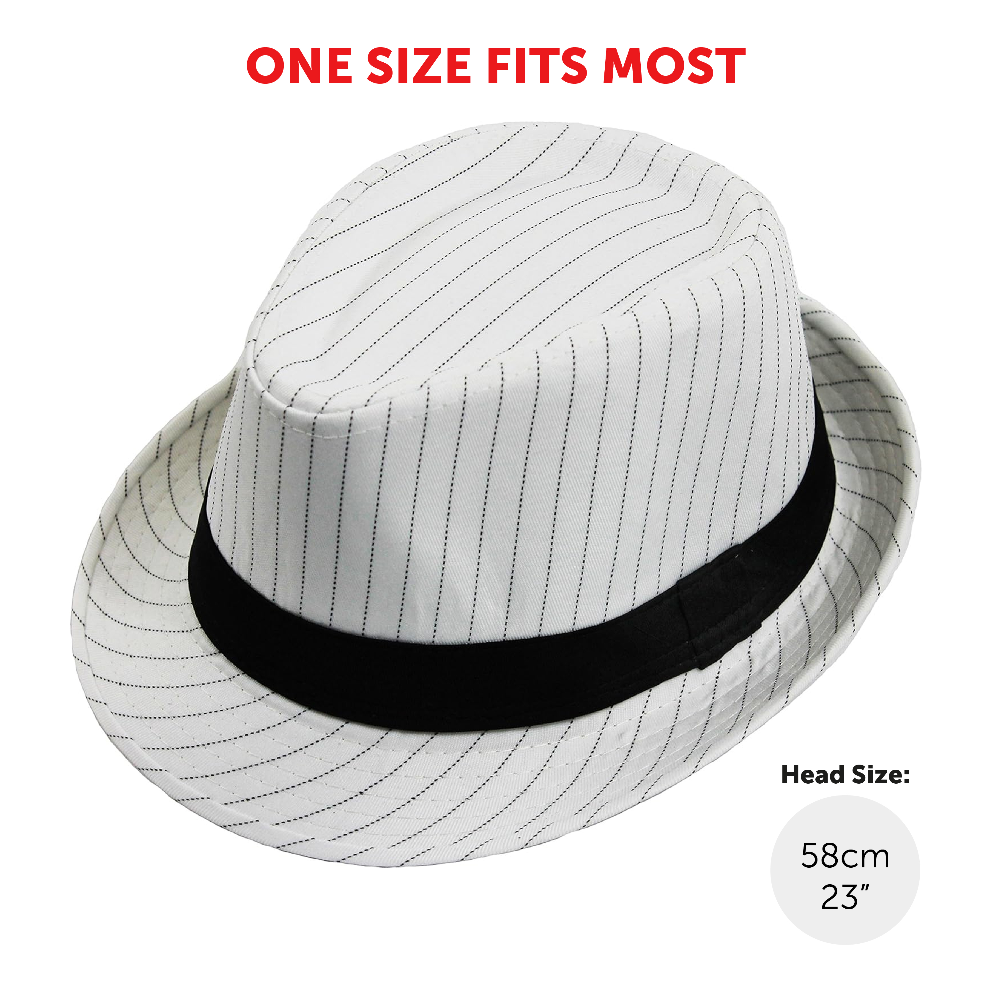 ONE SIZE FITS MOST: The White Trilby Pinstripe Hat is available in one size, suitable for most Adults to wear comfortably with a head size of 58cm (23")