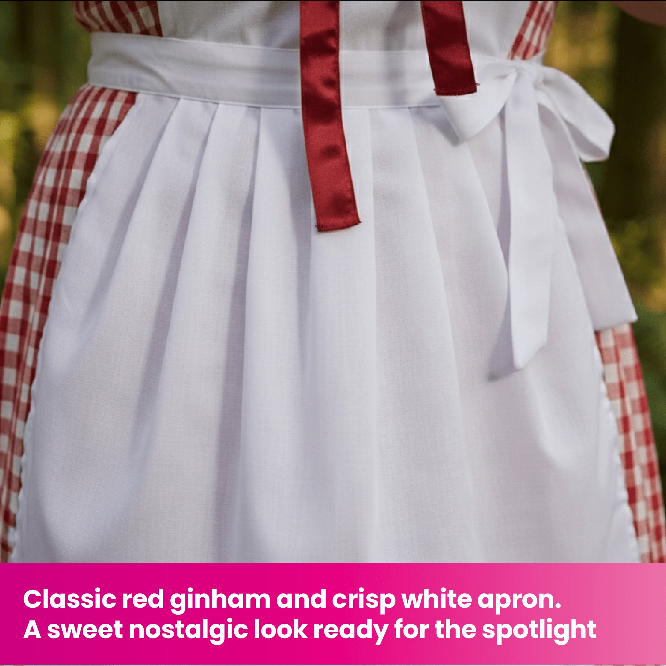 This enchanting Red Riding Hood Costume features a long red cape with an attached hood and easy tie-up fastening, paired with a classic red and white gingham-style dress complete with an attached white apron. Available in sizes X-Small to XX-Large, this outfit offers a flattering and comfortable fit for a wide range of wearers.