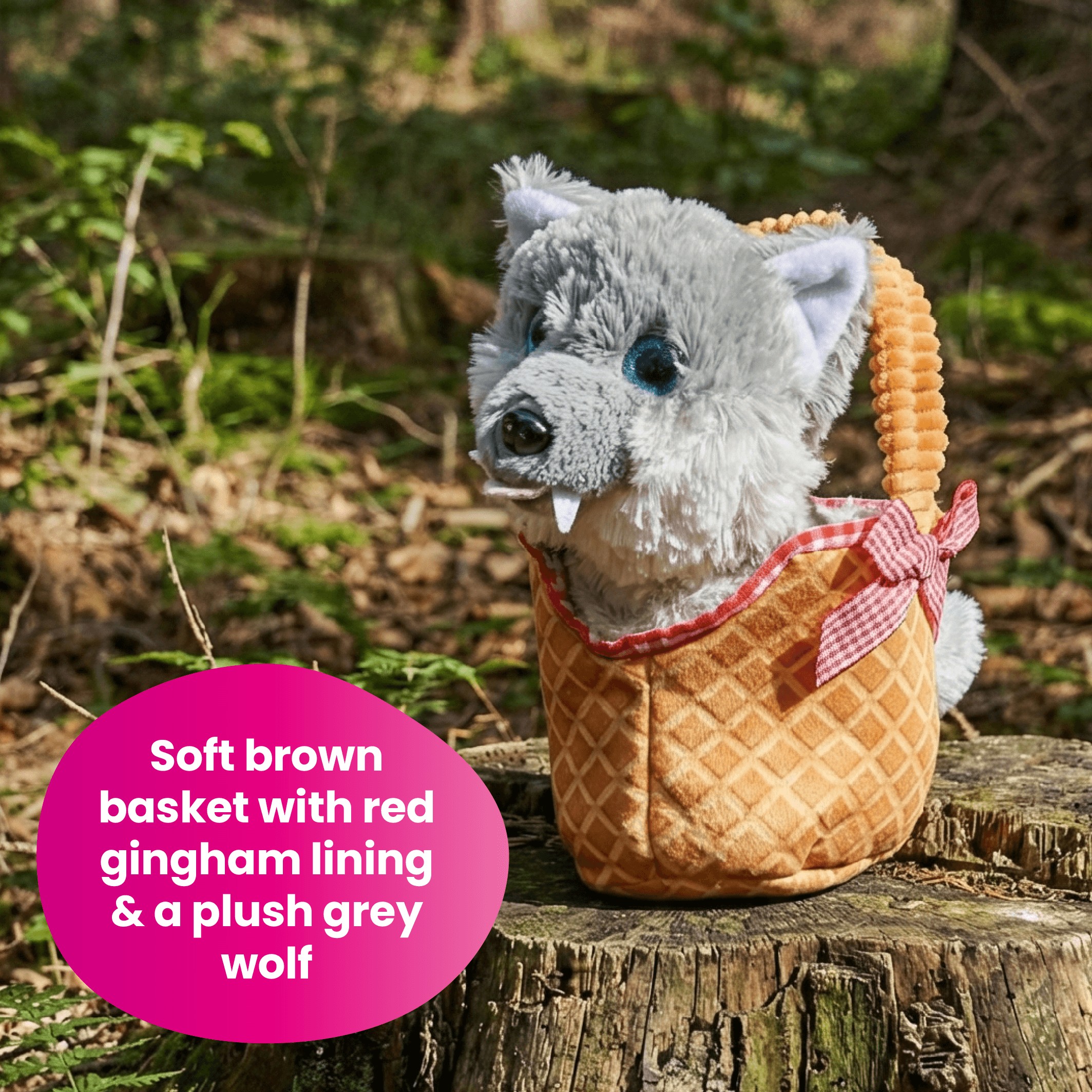 SOFT GINGHAM BASKET & PLUSH WOLF: