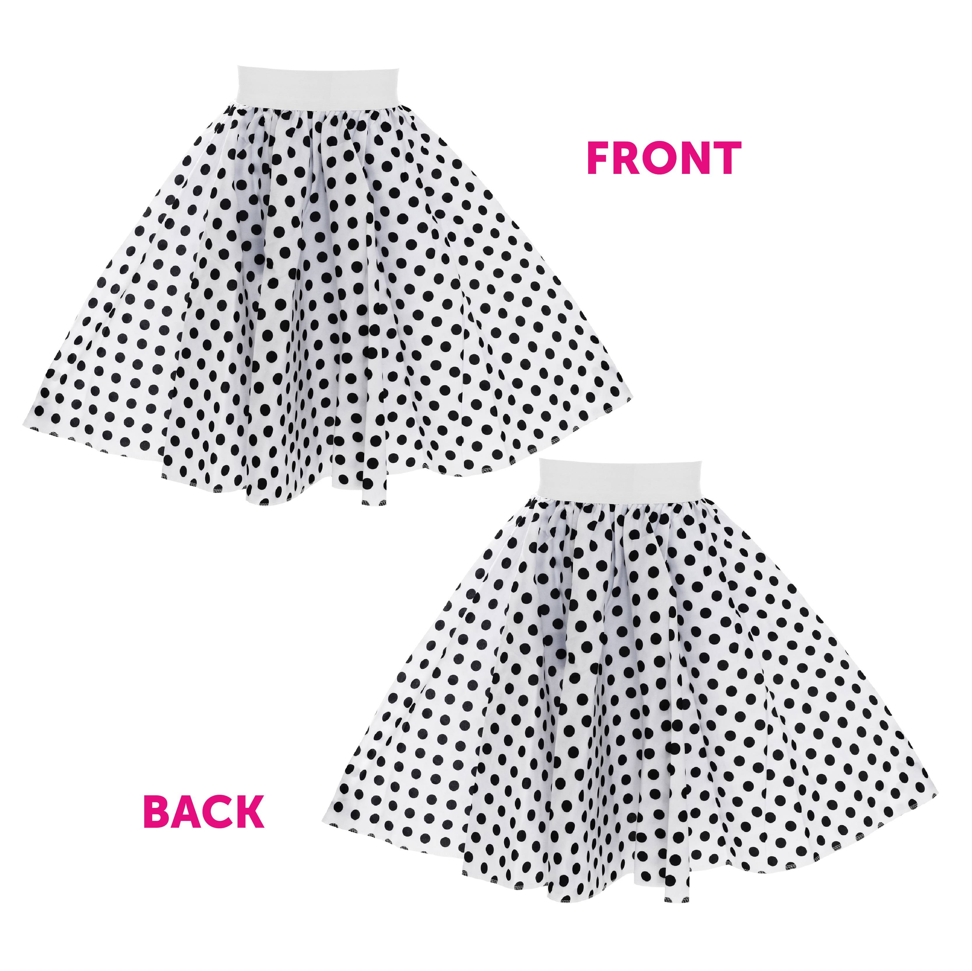 FANTASTIC COSTUME QUALITY: From the iconic design down to the comfort of the costume itself, your White and Black Polka Dot Skirt is made with a fantastic material and is sure to provide you with days of dancing and fun to enjoy!