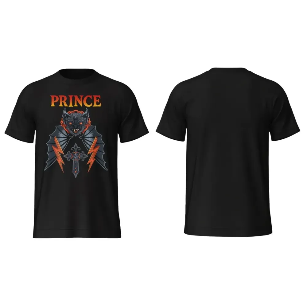 - Prince of Darkness Black T-Shirt with Bat Print Design