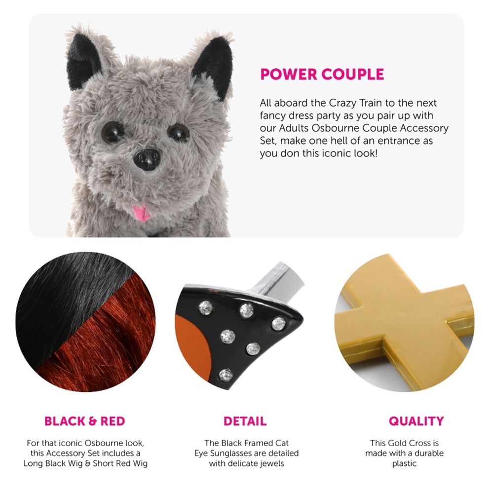 Make one hell of an entrance at your next fancy dress party with the Adults Osbourne Couple Costume Set. Inspired by iconic rock royalty, this complete set includes accessories and a statement T-shirt to help you nail the look from head to toe.