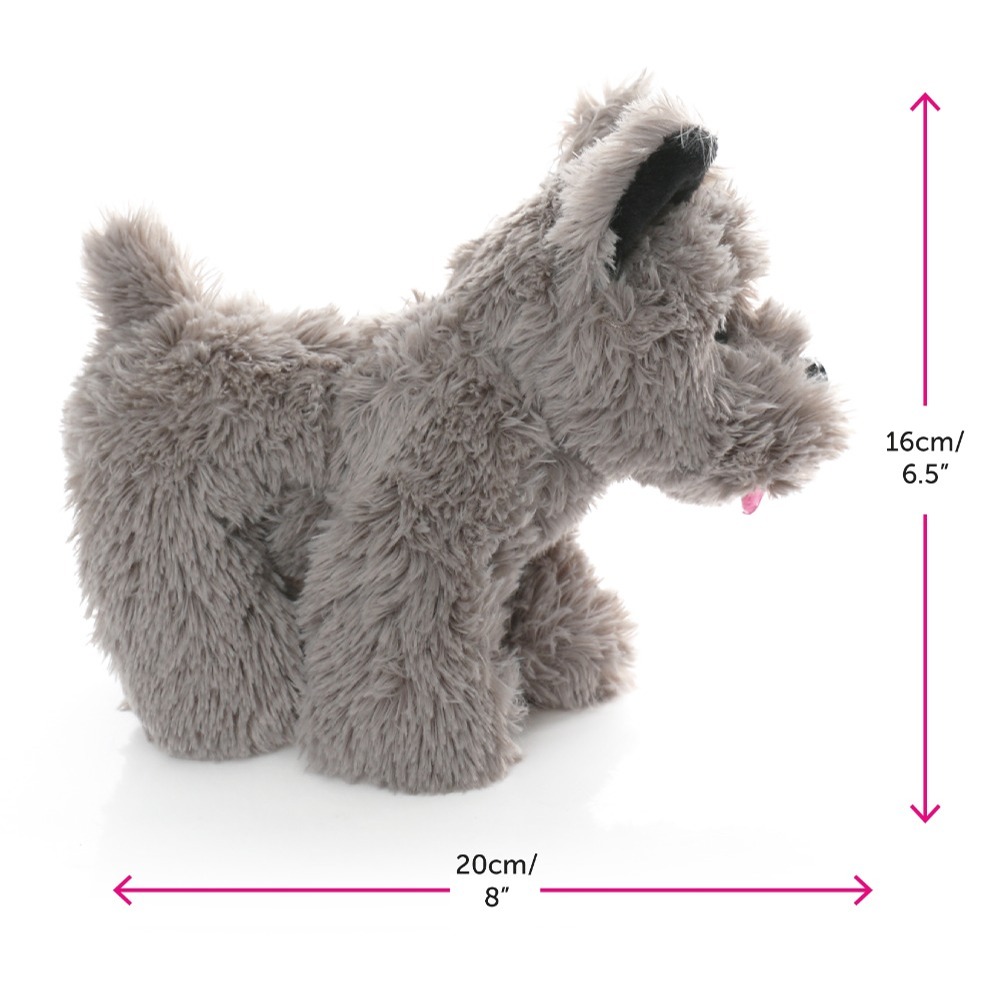 Includes a soft grey plush terrier, measuring approximately 6" (16cm) tall — the perfect finishing touch to complete the look.