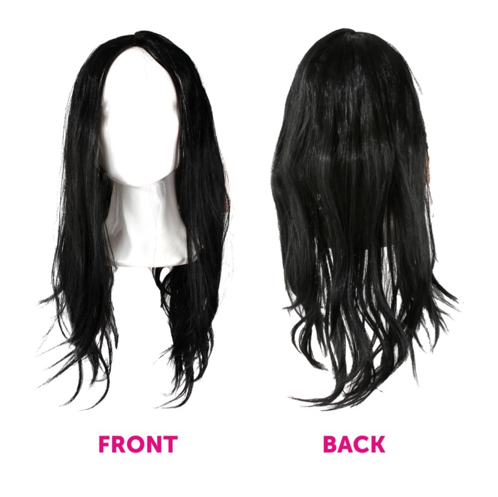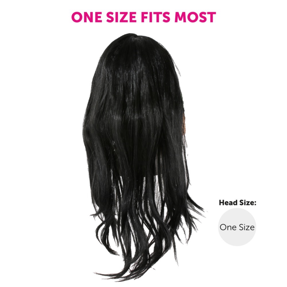 • The Black Wig features long, luscious synthetic hair parted down the middle for an authentic rockstar vibe.