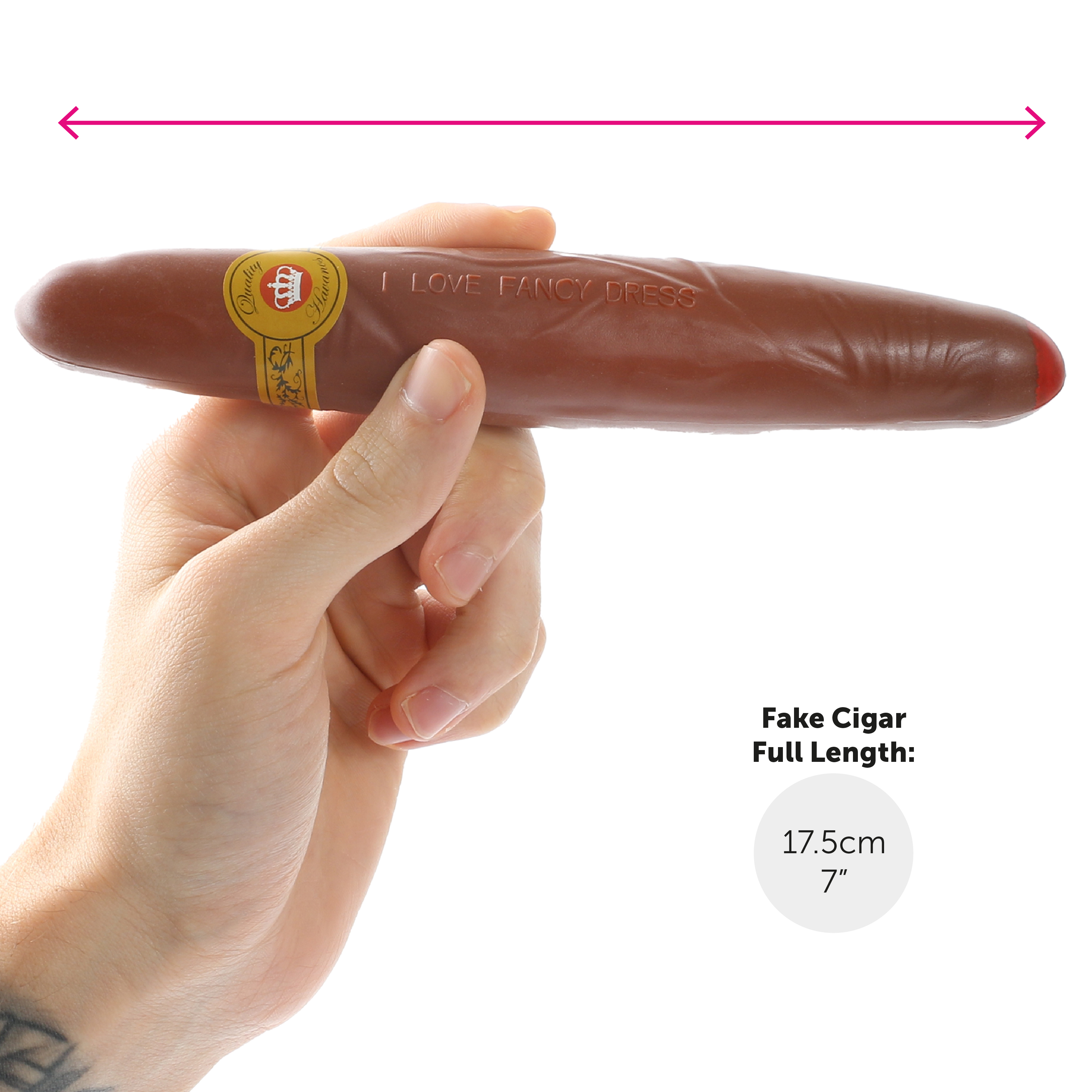 QUALITY PROPS: Your Union Jack Flag measures 5ft x 3ft (152cm x 91cm) and can be used as decoration indoors and outdoors, or used to parade! The Jumbo Cigar measures 17.5cm (7") in length, with a red tip from the heat, and a ‘Quality’ label wrapped around the filter, this is the perfect addition to your 1940's Prime Minister Outfit!