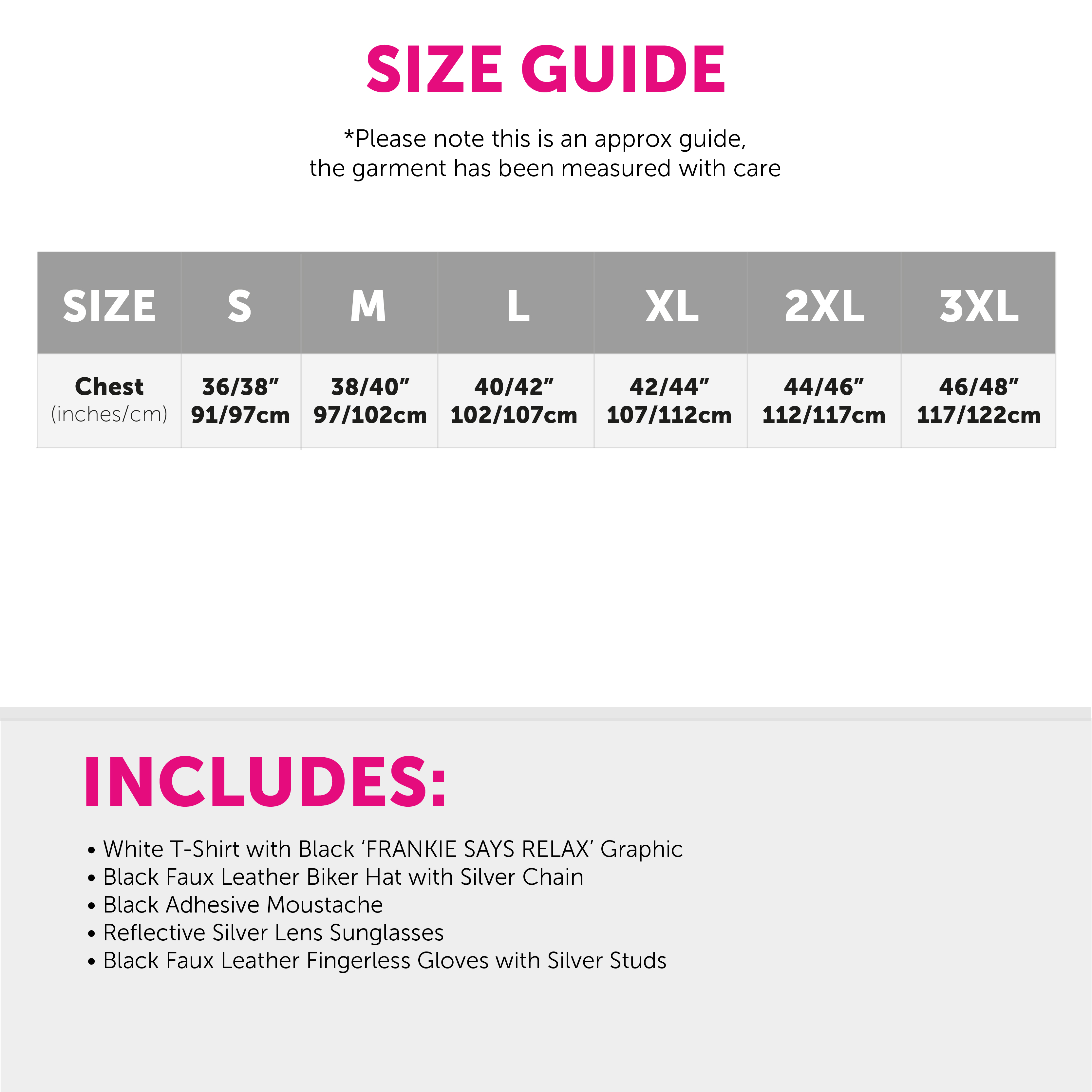 Adults 1980's Pop Star Costume – "Frankie Says Relax" Bold Slogan Tee, Hat, Tash, Glasses & Gloves   £15.99