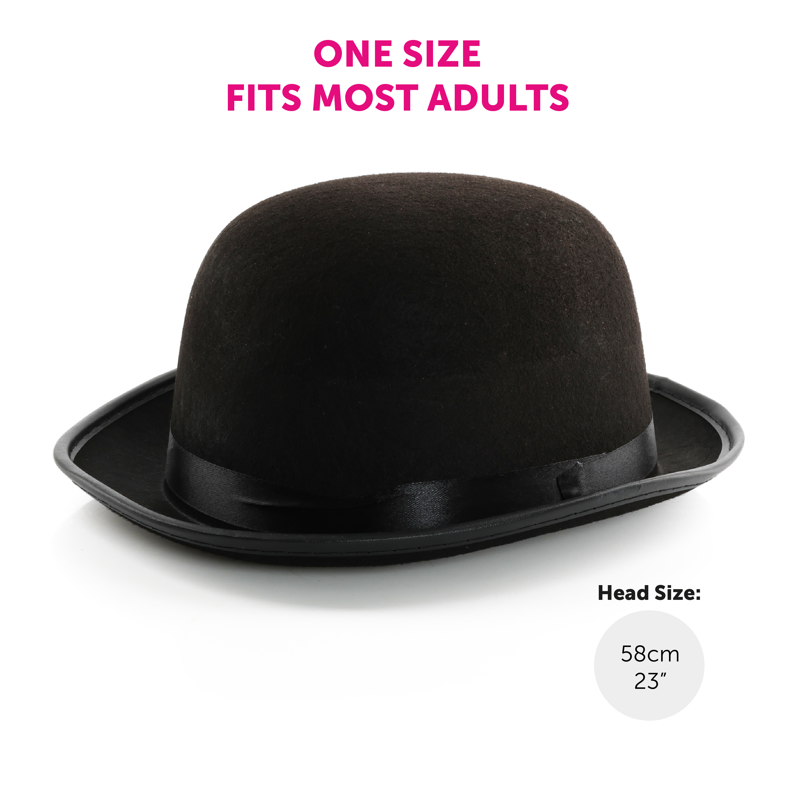 ONE SIZE FITS MOST: The Black Felt Bowler Hat is one size fits most, making it suitable for most Adults to wear comfortably, with a head size measuring up to 58cm (23"), an easy to wear, lightweight design!