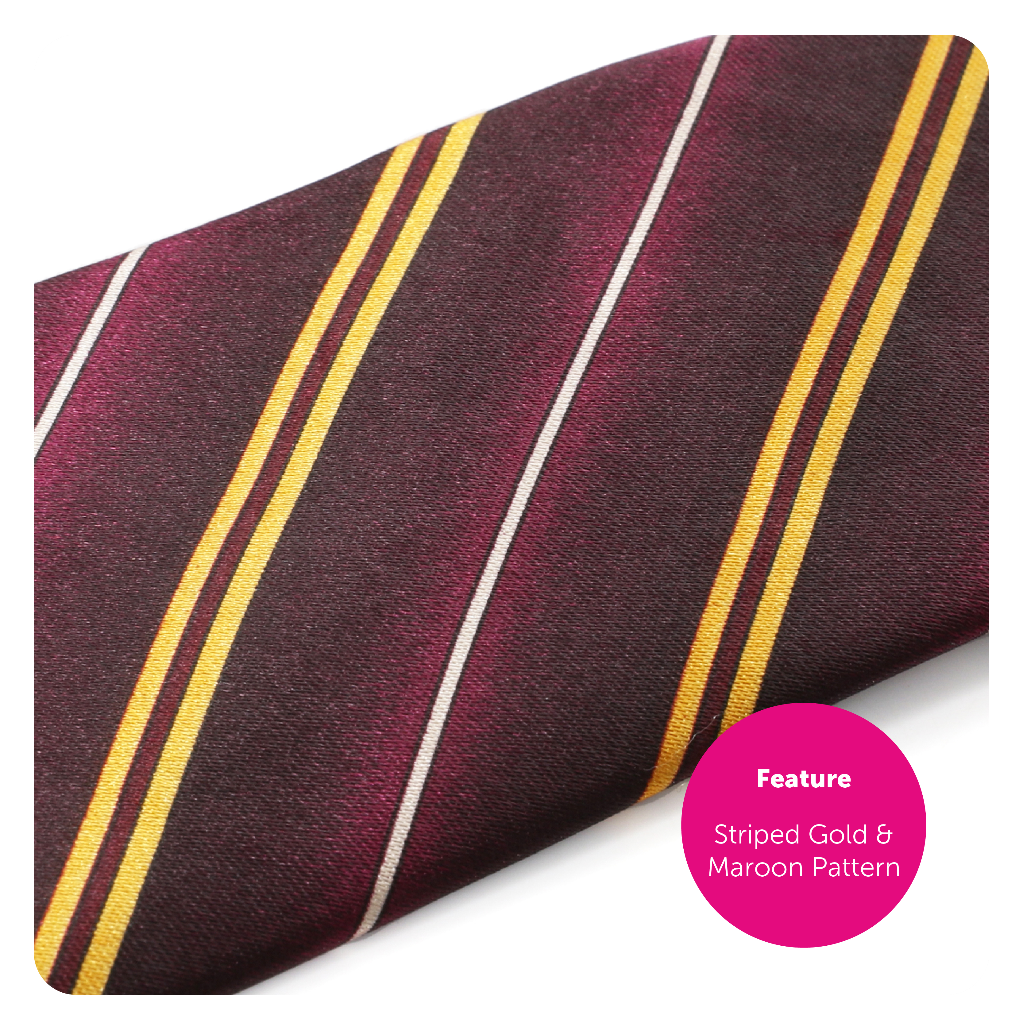 ONE SIZE FITS ALL: Your Striped Gold and Maroon Necktie measures a full length of 55" (139cm) when untied, and fits any Adult perfectly - it can be adjusted to the desired length and size to fit your style comfortably and well!