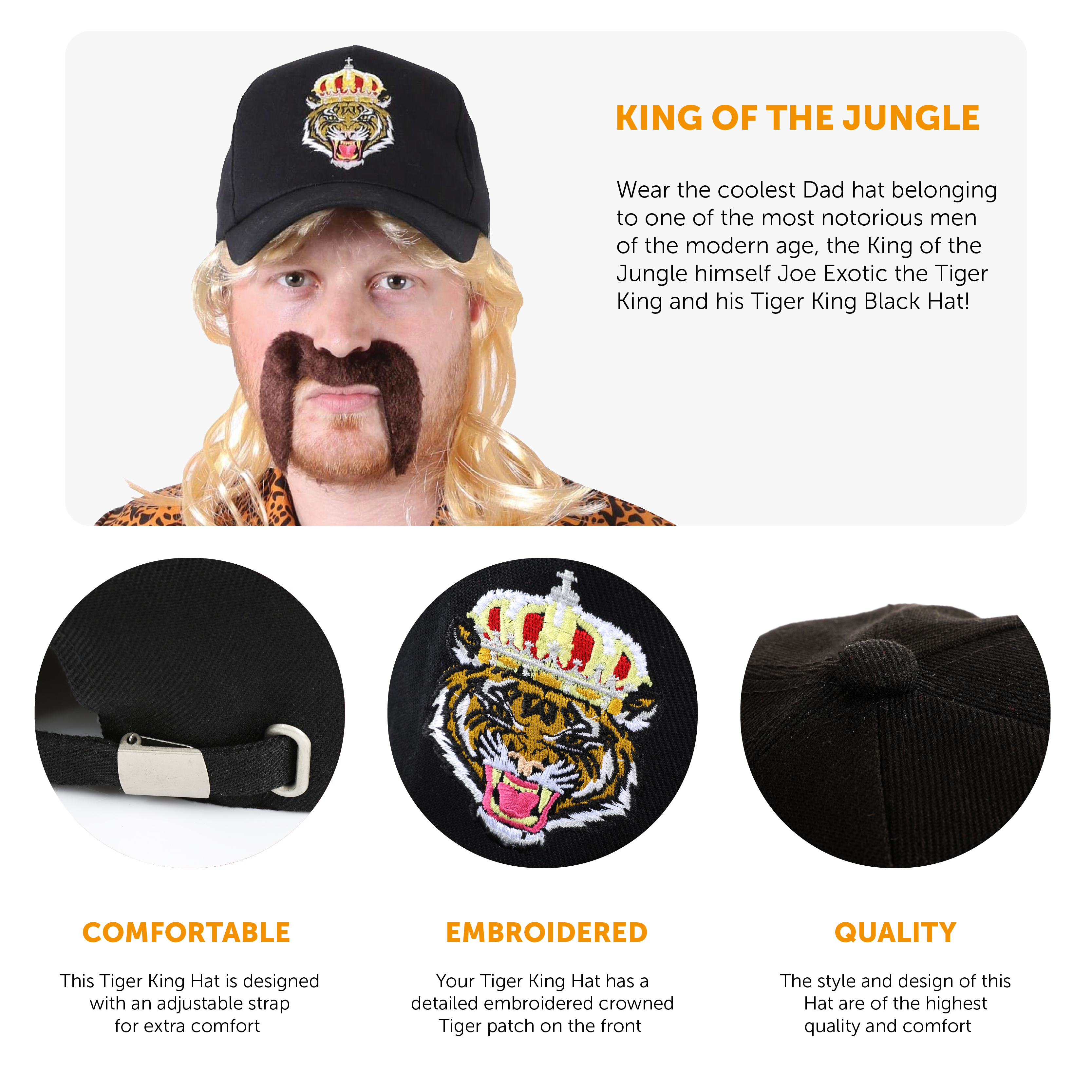 TIGER KING HAT: Wear the coolest Dad hat belonging to one of the most notorious men of the modern age, the King of the Jungle himself Joe Exotic the Tiger King and his Tiger King Black Hat!