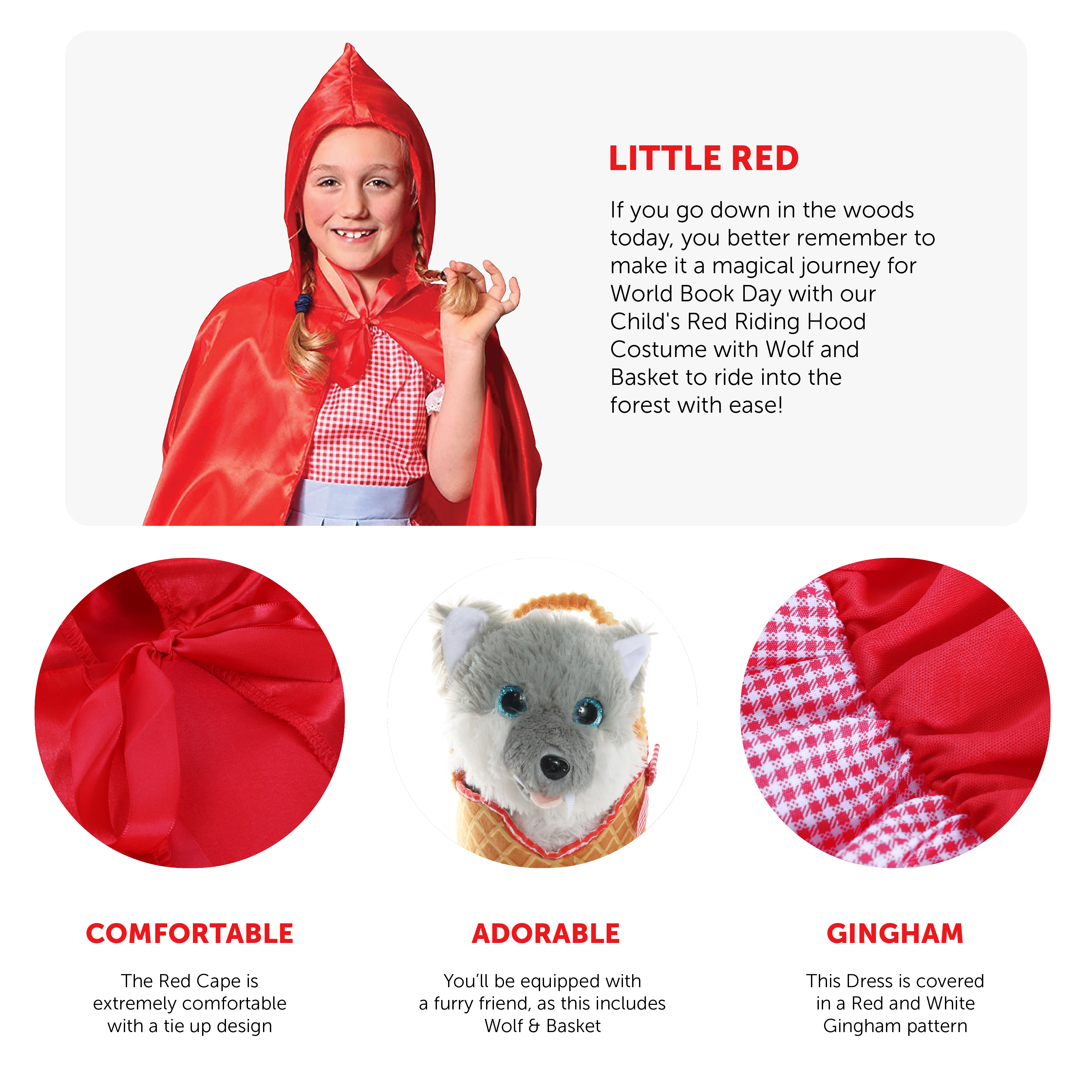 CHILD'S RED RIDING HOOD COSTUME WITH WOLF & BASKET: If you go down in the woods today, you better remember to make it a magical journey for World Book Day with our Child's Red Riding Hood Costume with Wolf and Basket to ride into the forest with ease!
