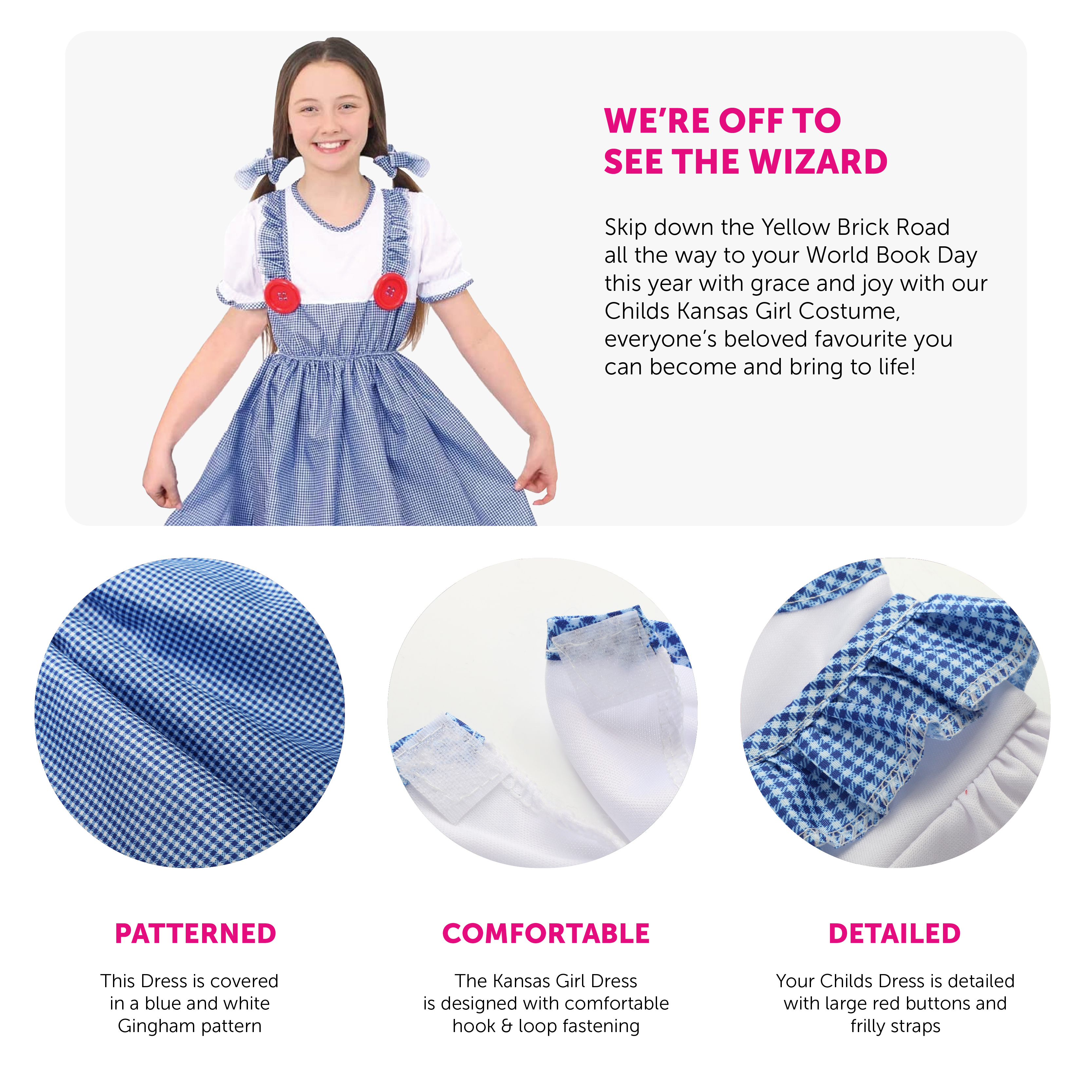 AMAZING QUALITY: Not only does our Kansas Girl Dress look incredible and recognisable, but it also feels amazing to wear with its quality detailing, and with beautiful Gingham patterns and matching accessory, this is just what you need this year!