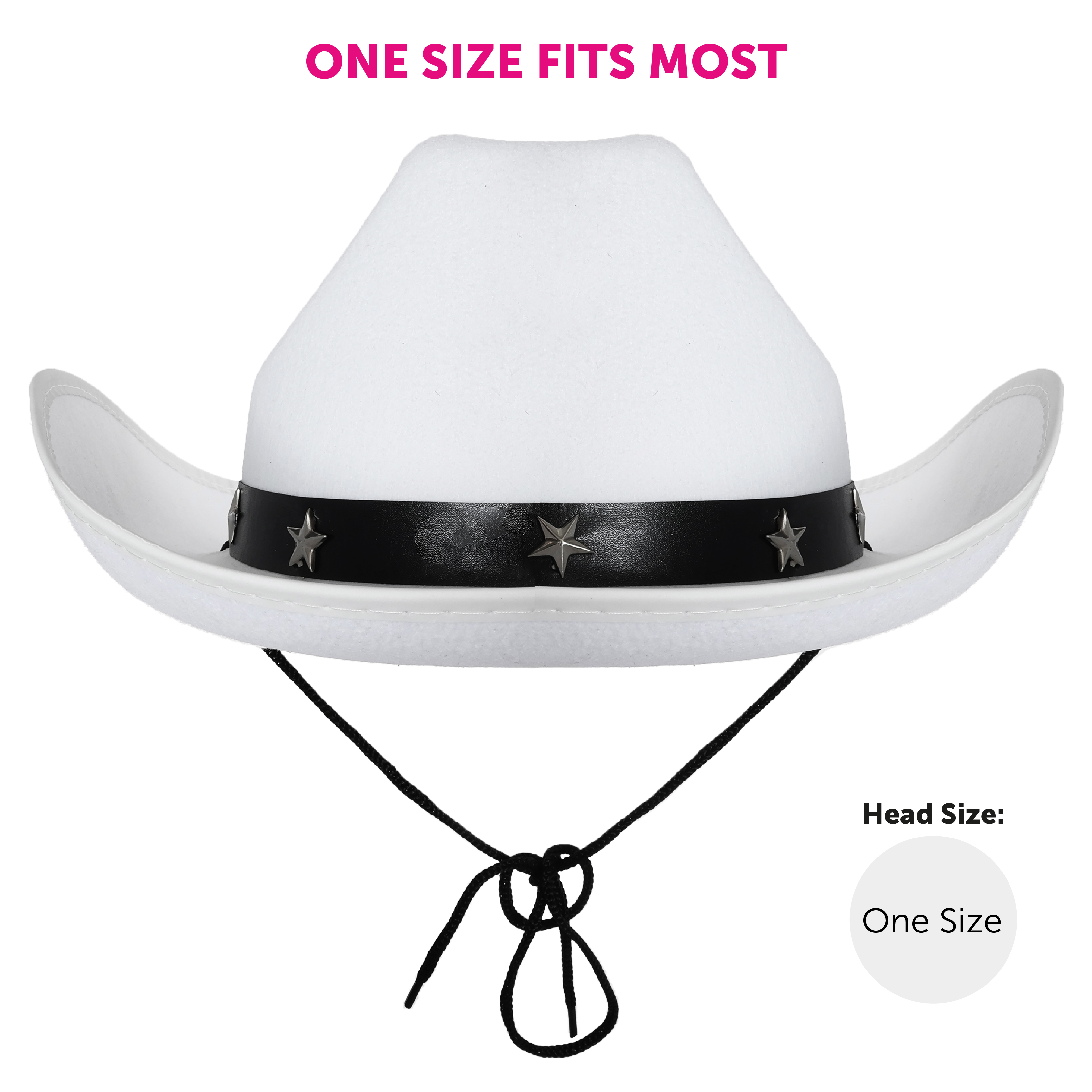 ONE SIZE FITS ALL: The White Cowboy Hat, Blonde Wig and Pink Bandana in the Cowboy Doll Accessory Set are one size, being a comfortable fit and perfect size to wear for all! The Pink Paisley Bandana measures a full length and width of 55cm x 55cm (21.5" x 21.5")