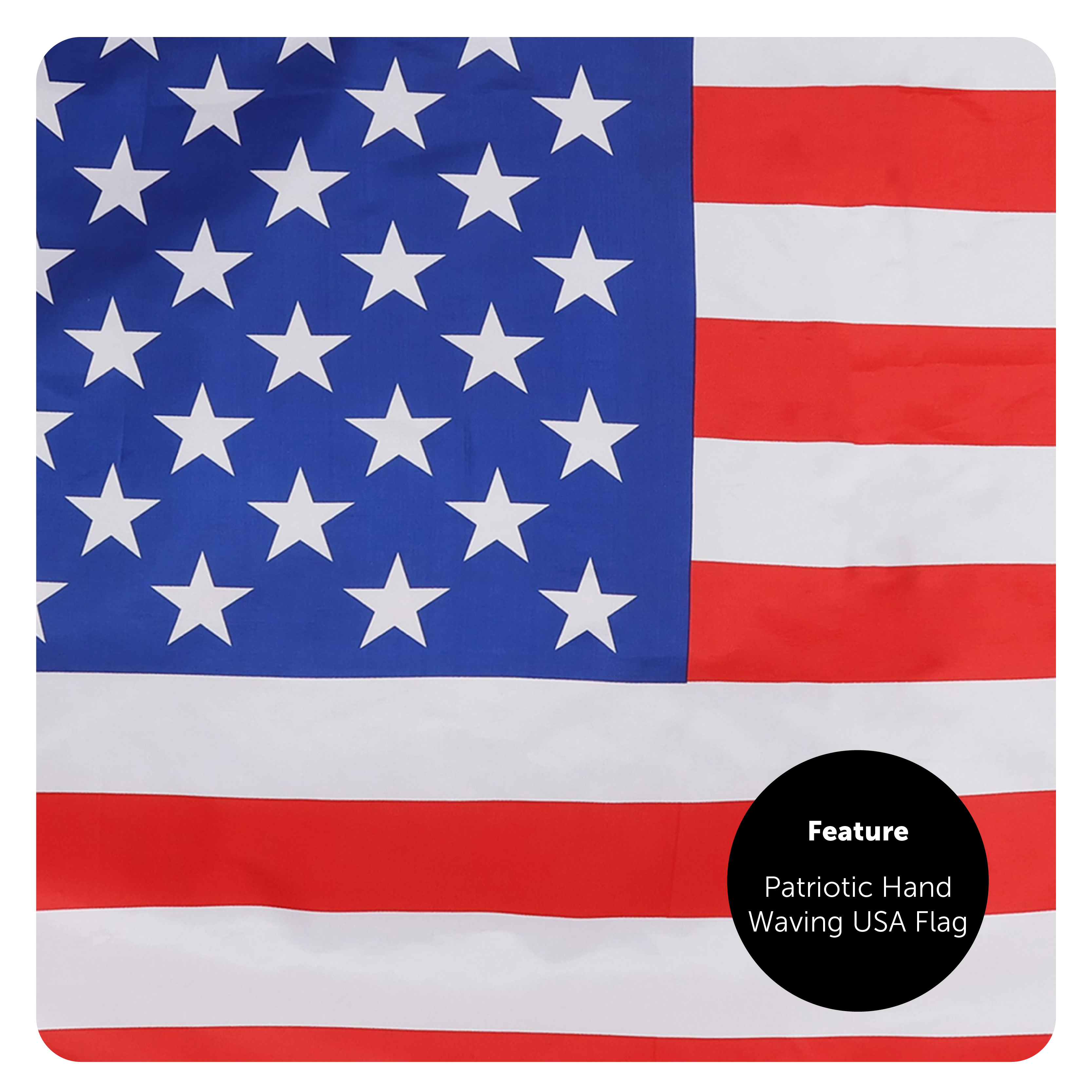 FLAG MEASUREMENTS: The USA Hand Waving Flag is a great sized accessory to add to your US President Costume - the Flag Stick measures a length of 34cm (13.5"), and the Flag itself measures 20cm x 15cm (8" x 6"), the perfect lightweight Flags to parade around anywhere you need them!