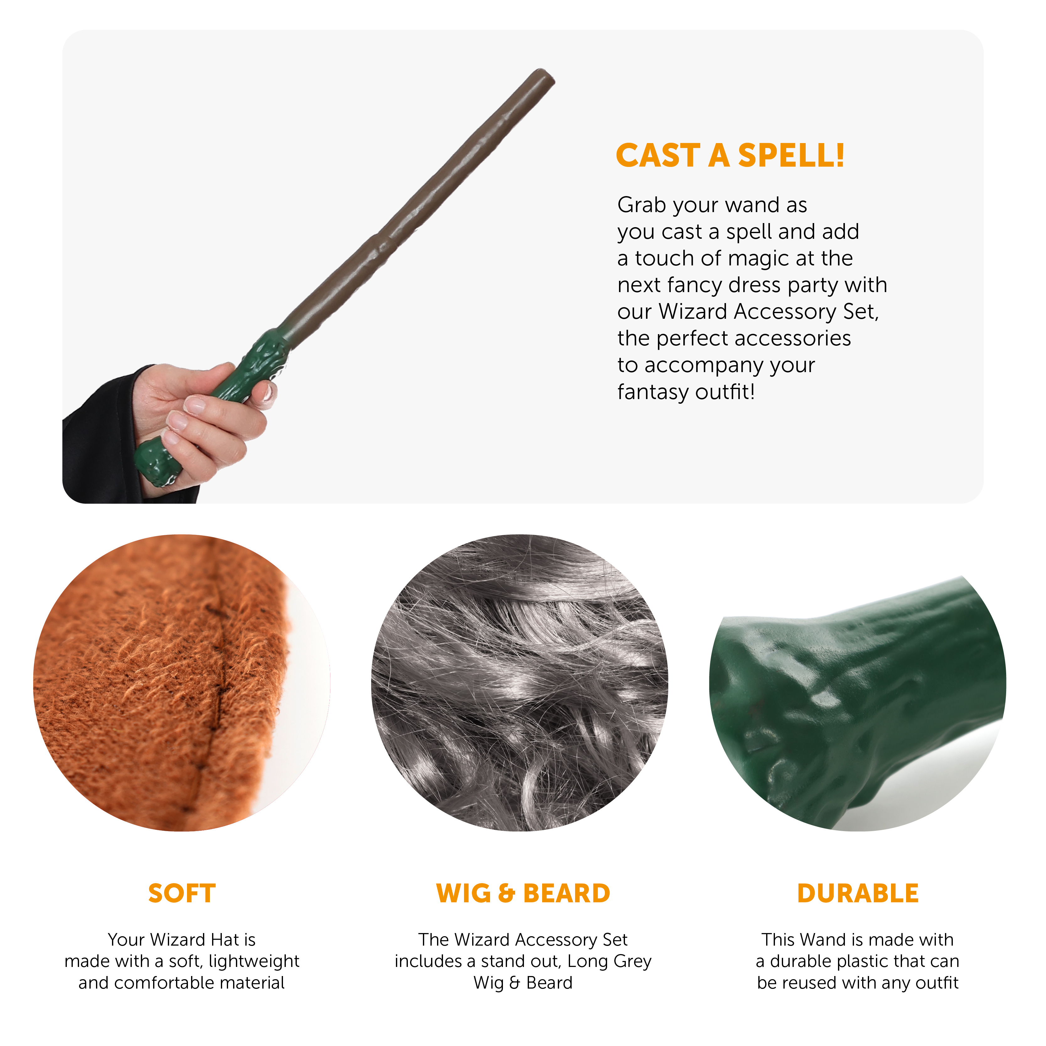 WIZARD ACCESSORY SET: Grab your wand as you cast a spell and add a touch of magic at the next fancy dress party with our Wizard Accessory Set, the perfect accessories to accompany your fantasy outfit!