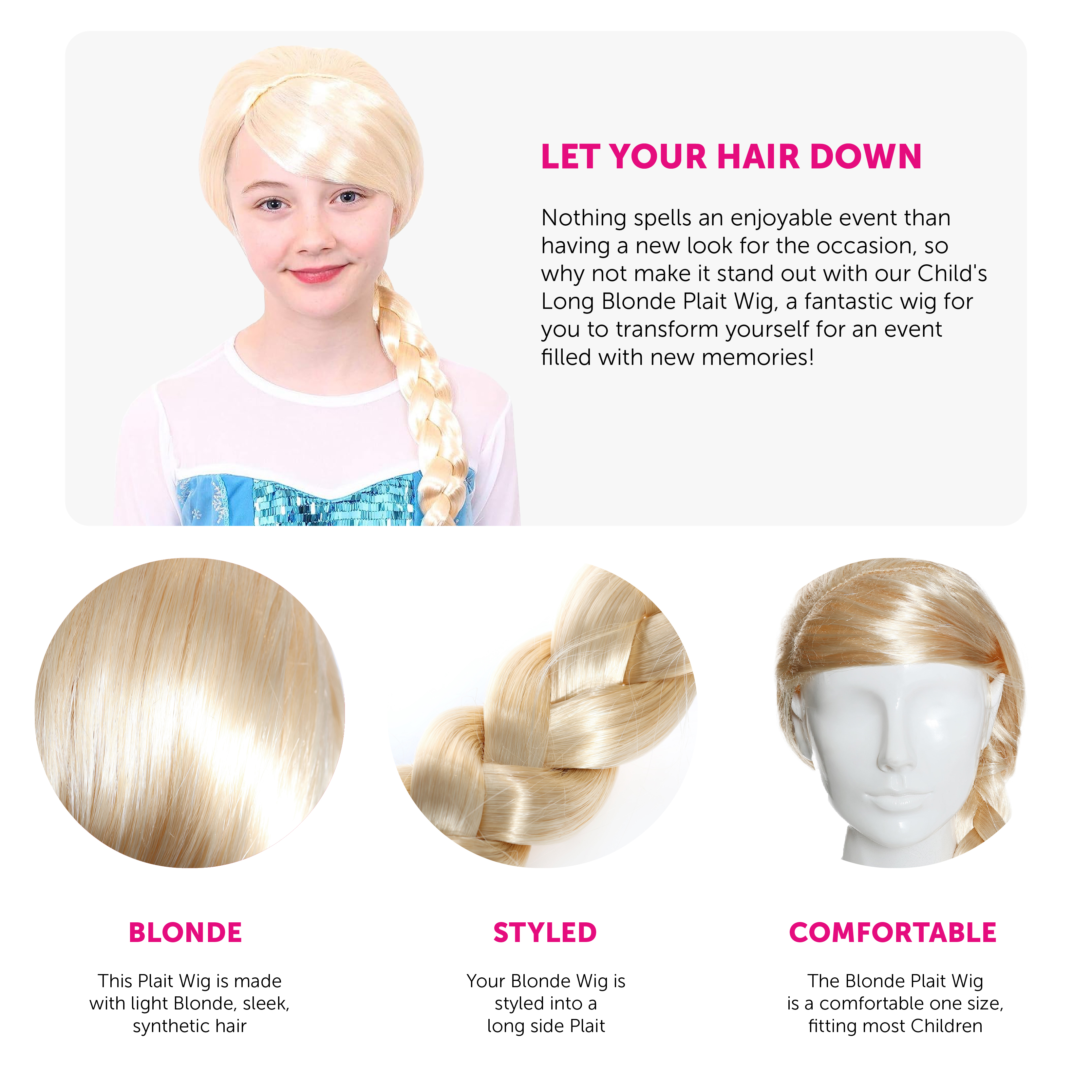 PERFECT FOR FILM FANCY DRESS AND WORLD BOOK DAY: Whether it be a regular fancy dress outing, World Book Day or a Film themed fancy dress event, you can be sure to count on our Child's Long Blonde Plait Wig for making some great memories!