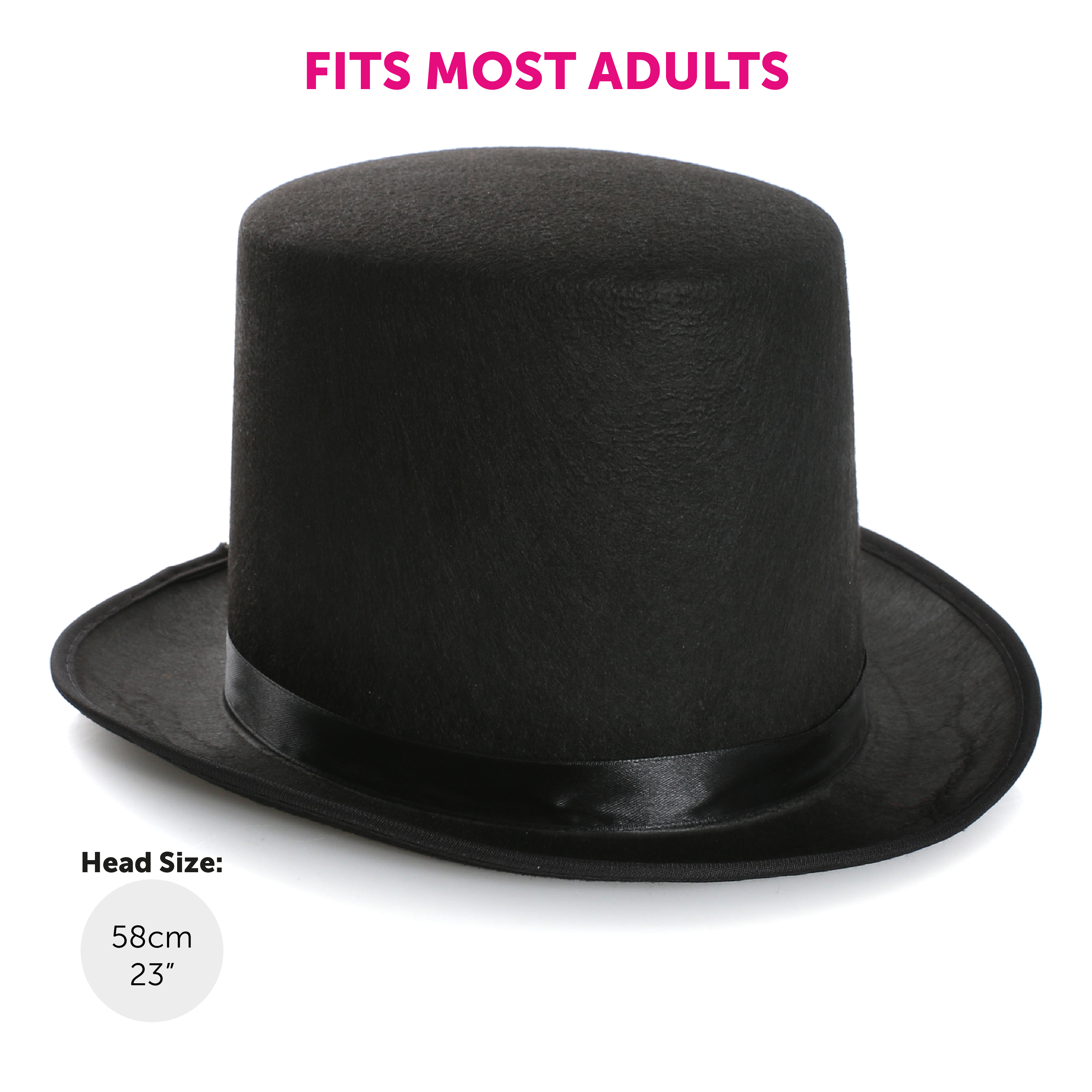 AVALIABLE IN 2 SIZES: This Set includes a Black Top Hat and a Bow Tie that are designed to fit most Adults comfortably! The Black Top Hat is available in 58cm (23") head size, and the Gold Sequin Bow Tie measures a neck size up to 46cm (18") or it's available in 60cm (23.5") head size, and the Gold Sequin Bow Tie measures a neck size up to 46cm (18"). Perfect accessories to add to your Costume!