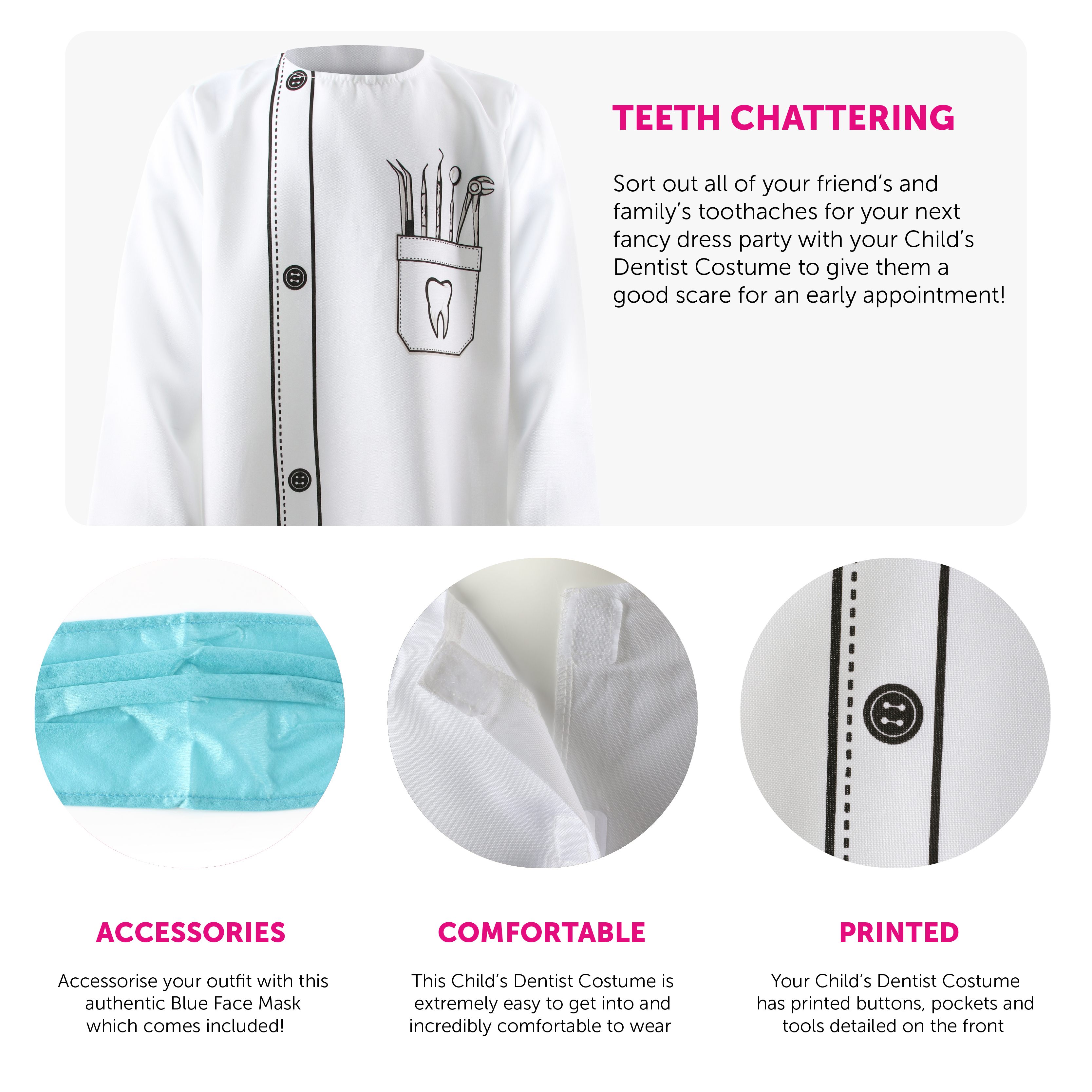 CHILD DENTIST COSTUME: Sort out all of your friend’s and family’s toothaches for your next fancy dress party with your Child’s Dentist Costume to give them a good scare for an early appointment!