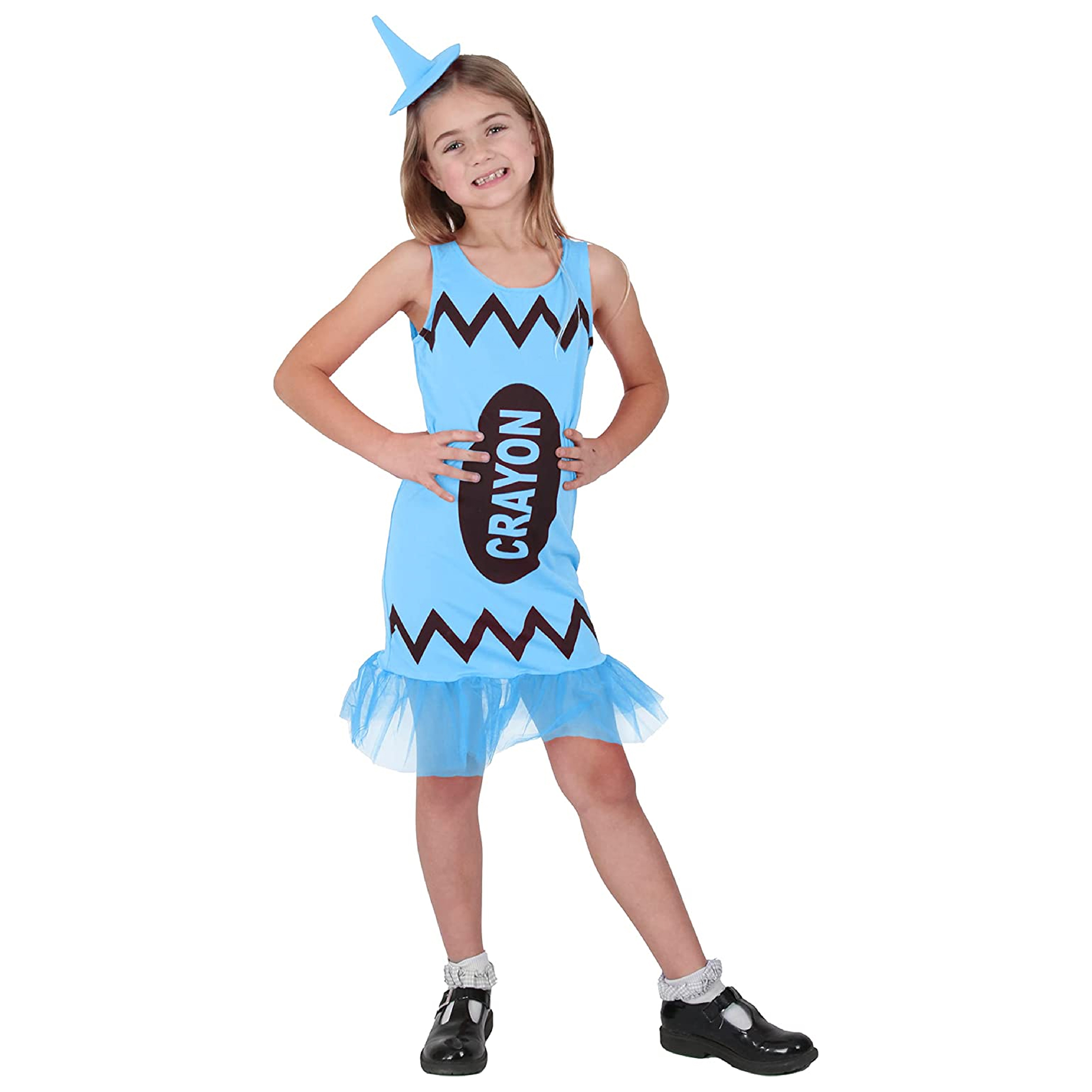 CHILD’S BLUE CRAYON DRESS: Fill in the party with colour and laughs at your next big event with your Child’s Blue Crayon Dress and scribble your dance moves into creation!