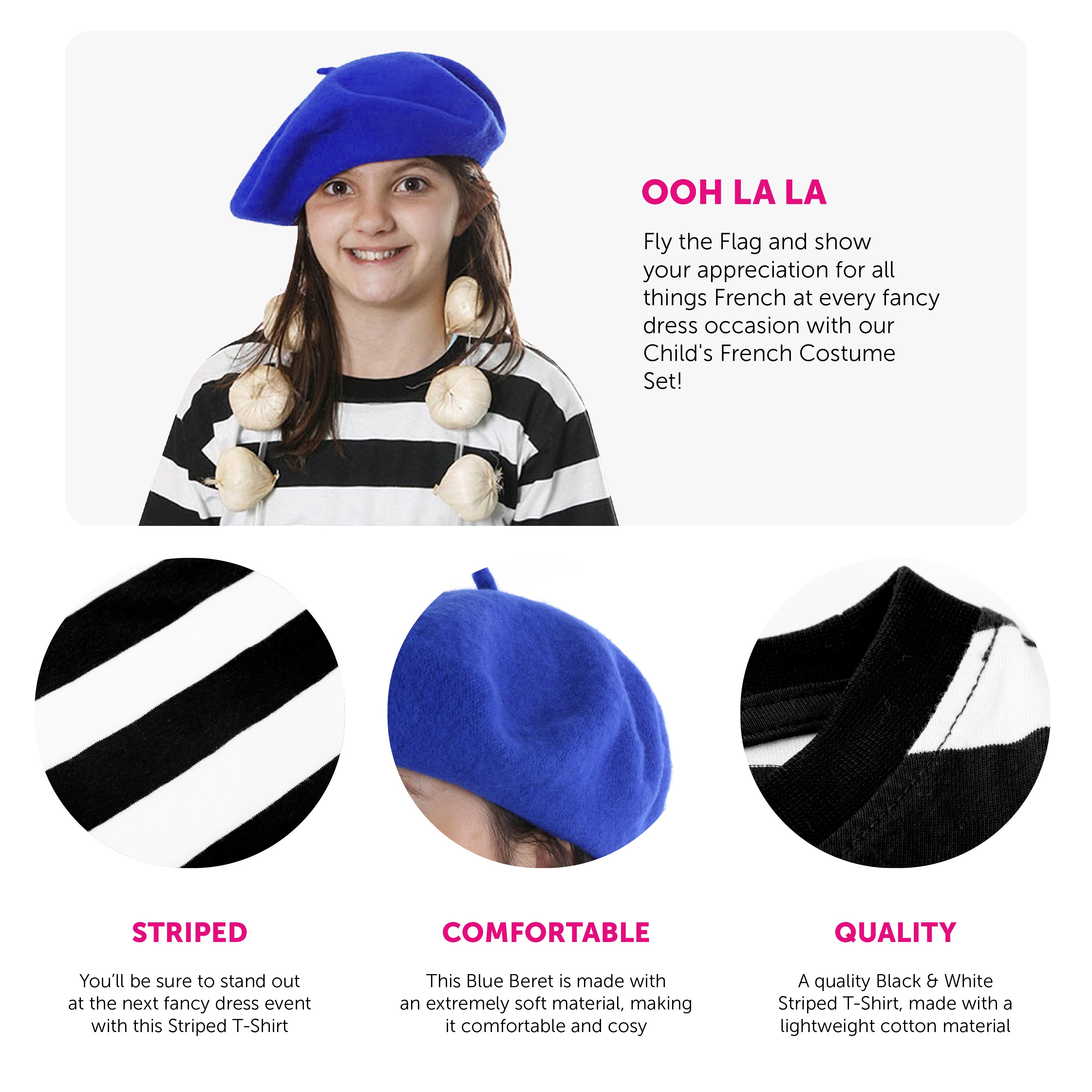 PERFECT FOR THEMED FANCY DRESS: If you’re attending a French themed party or event at School, or for any other fancy dress occasion our Child's French Costume Set is the perfect choice for you!