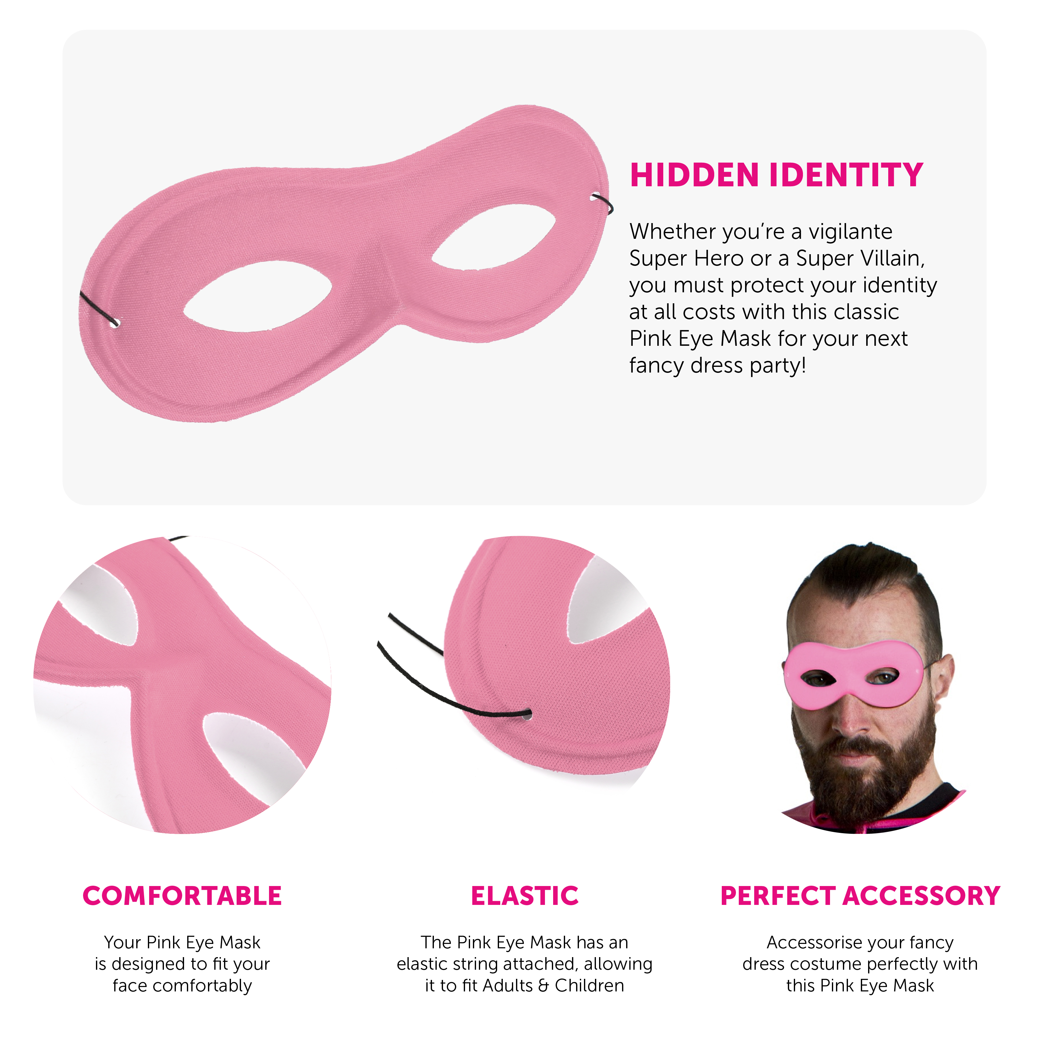 PINK EYE MASK: Whether you’re a vigilante Super Hero or a Super Villain, you must protect your identity at all costs with this classic Pink Eye Mask for your next fancy dress party!