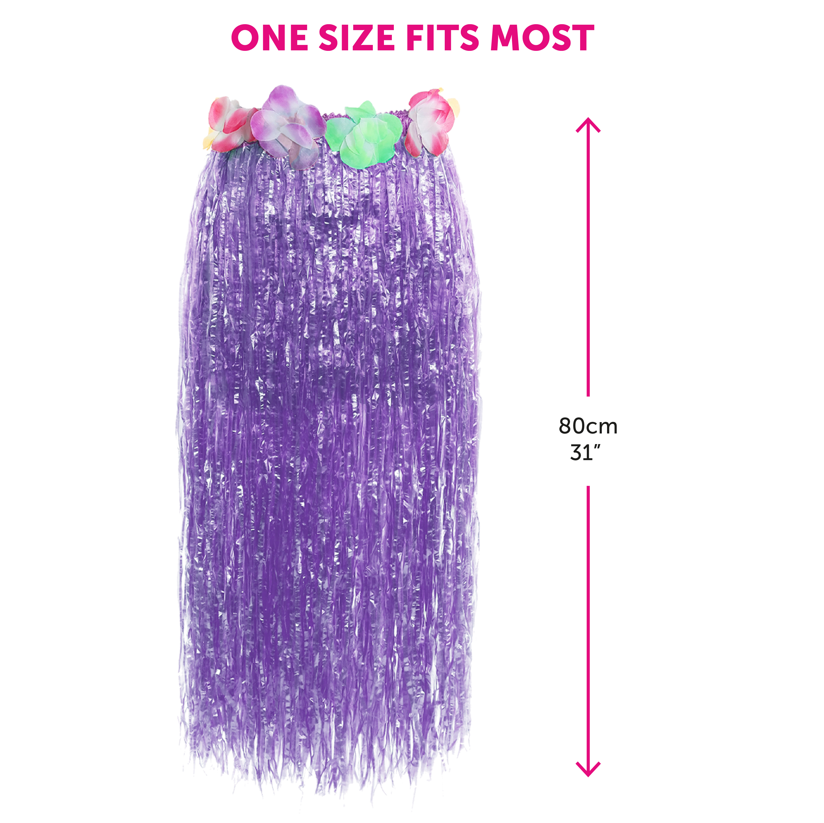 ONE SIZE FITS MOST: The Purple Hula Skirt is available in one size, with the Waist measuring 26/36" (66/91cm) and a Length of 31" (80cm), it is comfortable for most to wear!