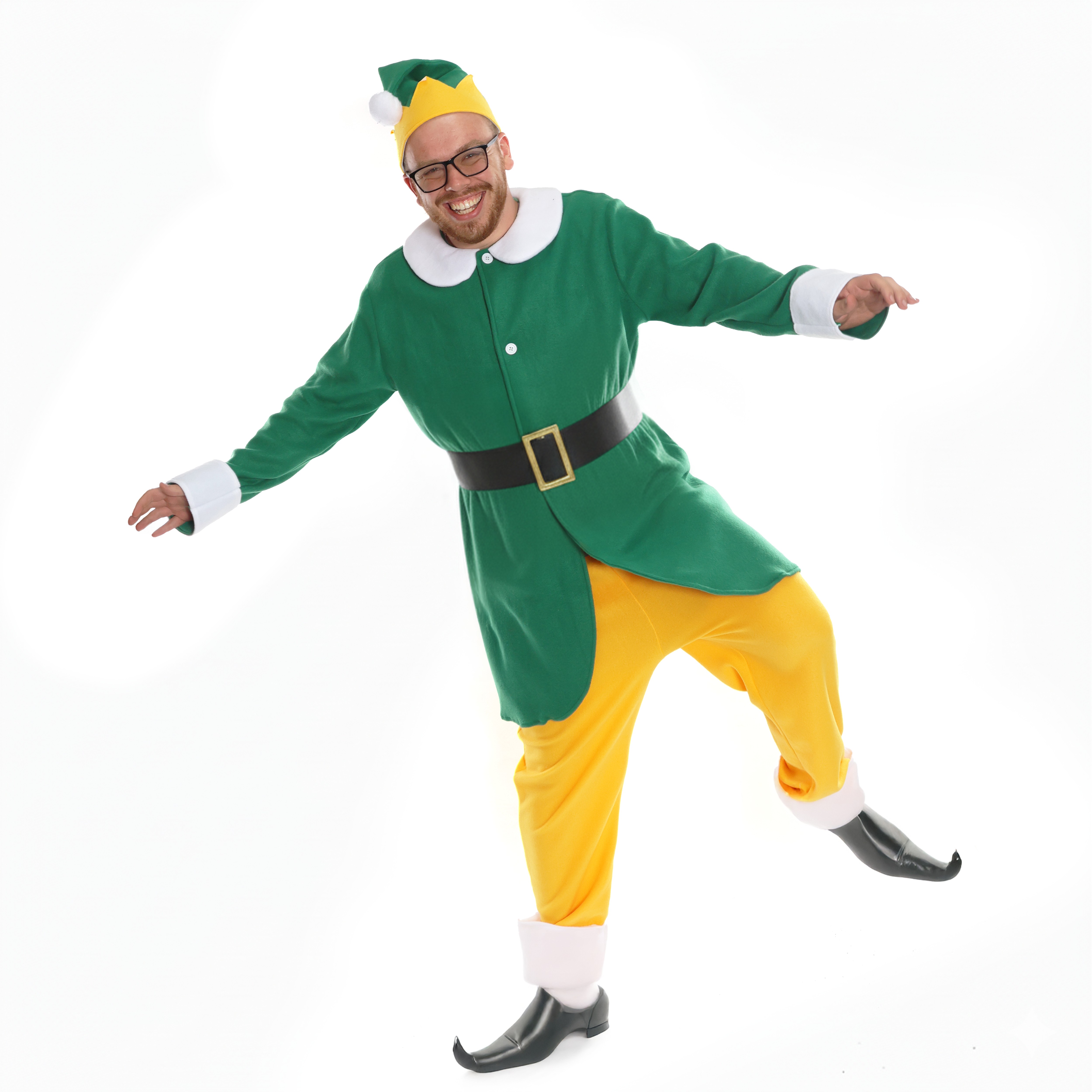 Adults Friendly Elf Costume | 4 Pcs | Jacket, Trousers, Belt & Hat