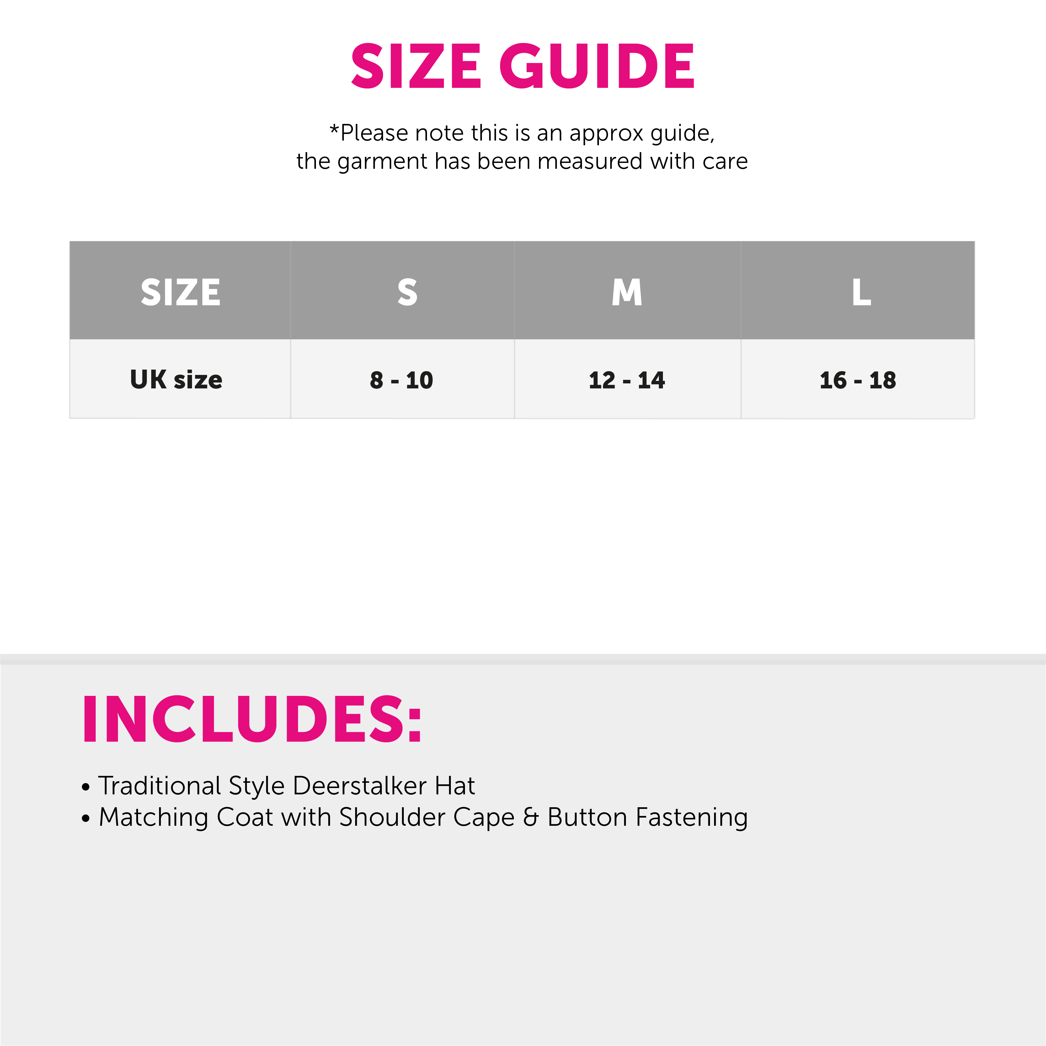 AVAILABLE IN MULTIPLE SIZES: Our Ladies Detective Costume is available in various sizes, Small - Large: Small - UK size 8 - 10 | Medium - UK size 12 - 14 | Large - UK size 16 - 18