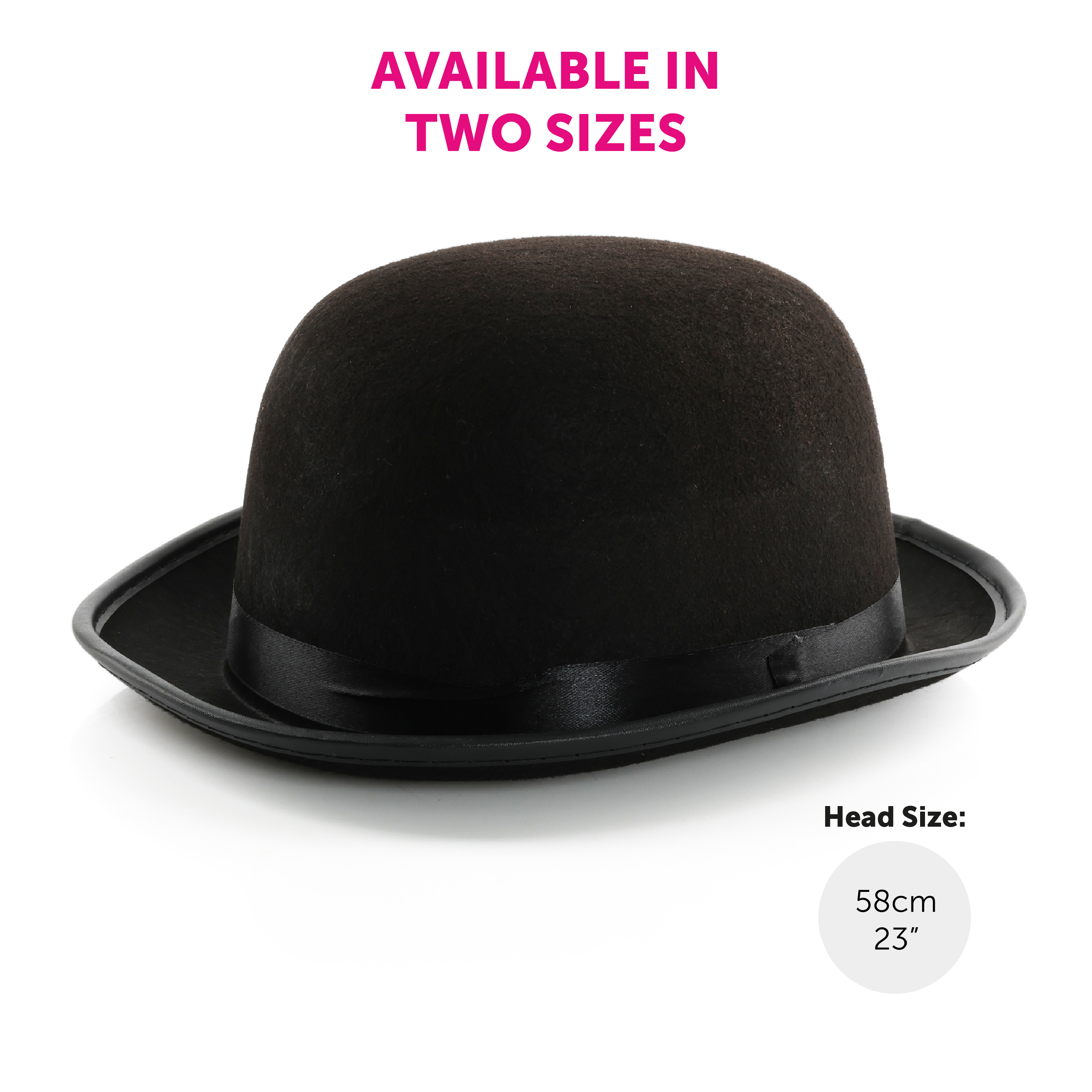 GREAT HEAD SIZE: The Black Bowler Hat is a great size, designed to fit most Adults comfortably with two head sizes available measuring up to 55cm (21.5") and 58cm (23")