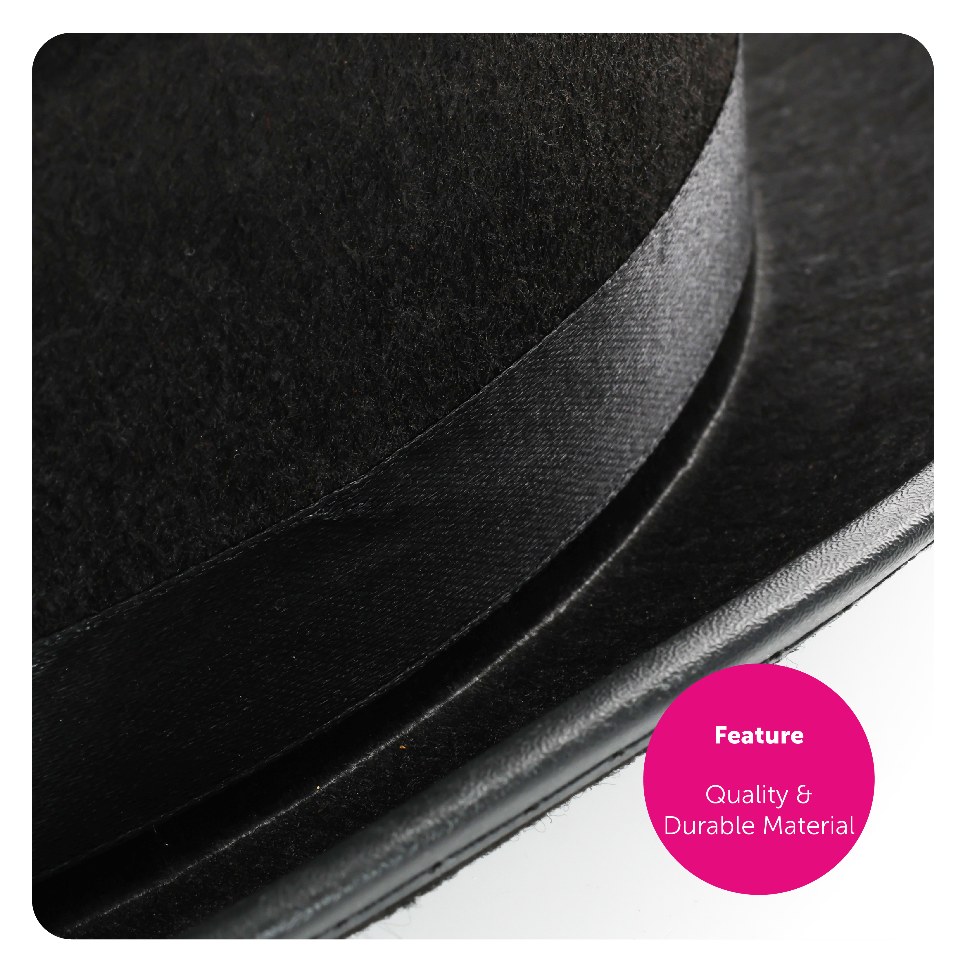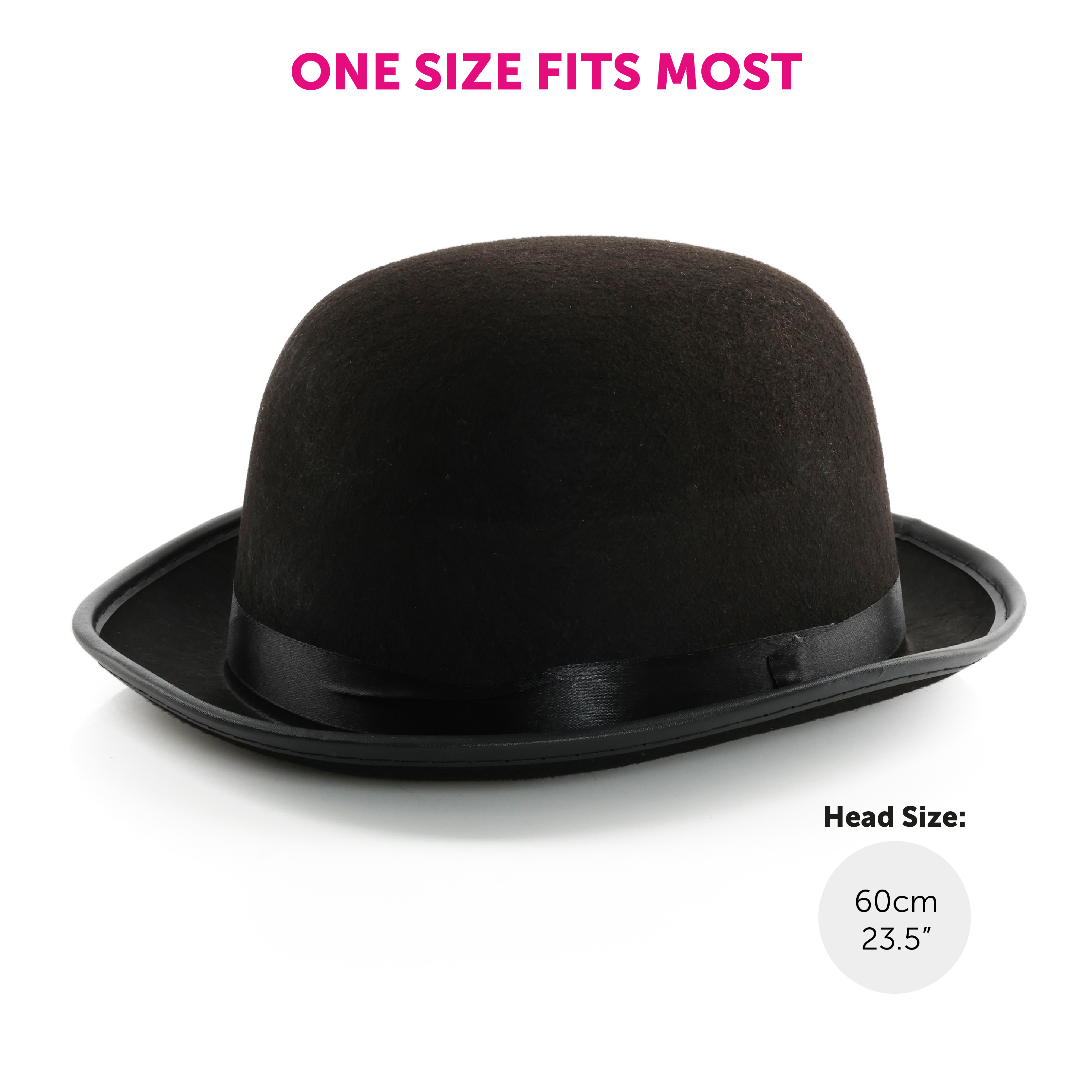 HEAD SIZE: Your Black Bowler Hat is a great sized accessory for any Adult to wear comfortably, with a suitable head size of up to 60cm (23.5")