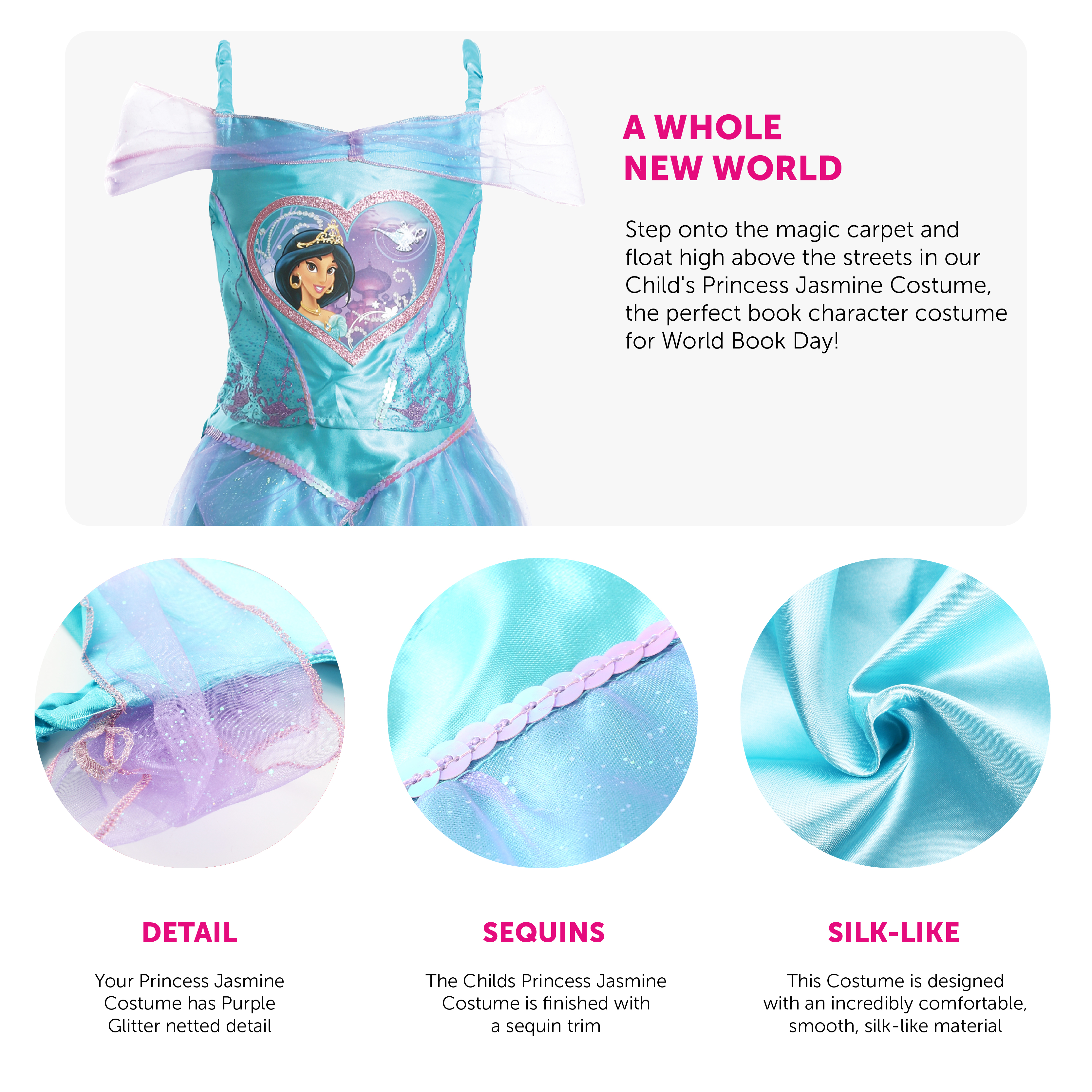 CHILDS PRINCESS JASMINE DRESS: Step onto the magic carpet and float high above the streets in our Child's Princess Jasmine Costume, the perfect book character costume for World Book Day!