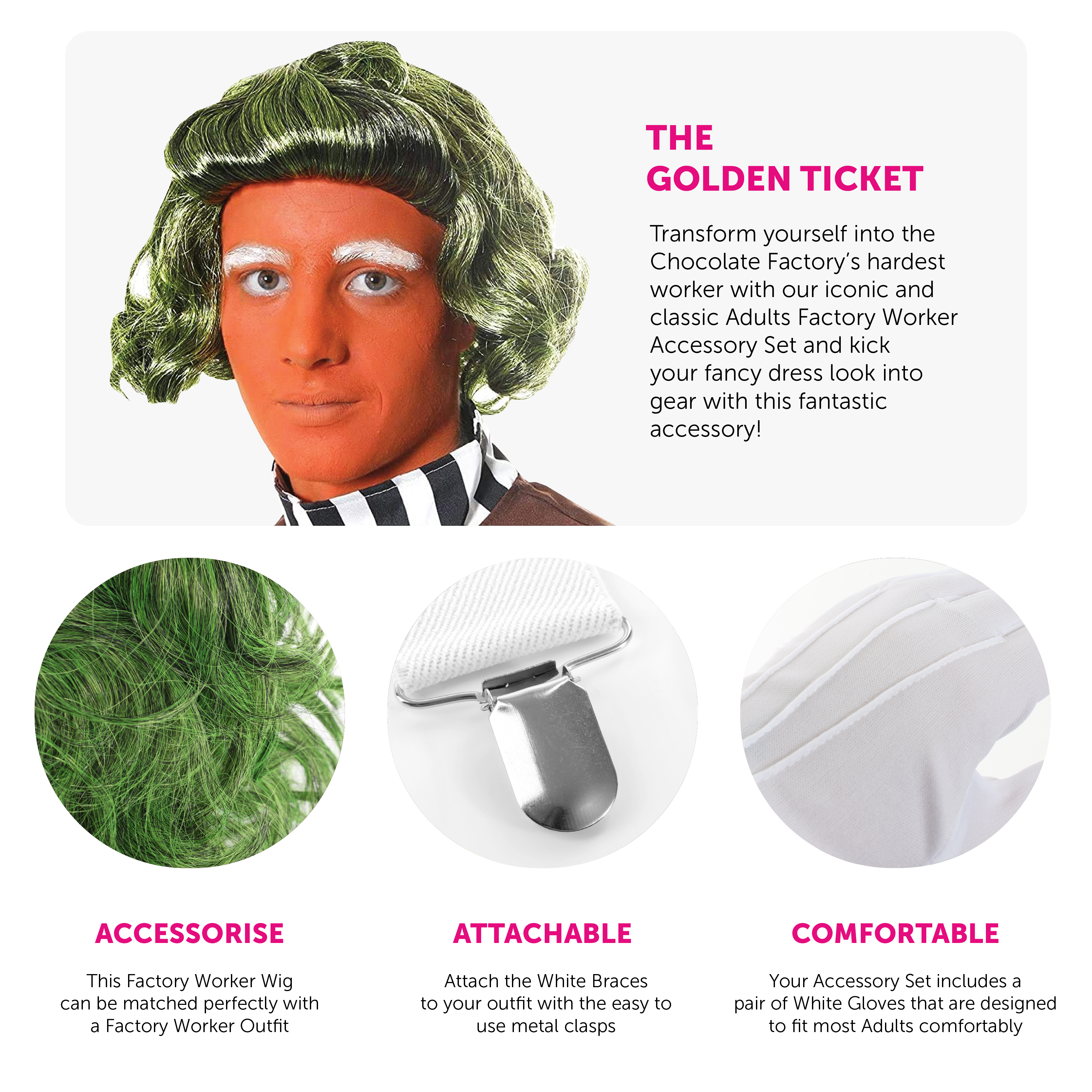ADULTS FACTORY WORKER ACCESSORY SET: Transform yourself into the Chocolate Factory’s hardest worker with our iconic and classic Adults Factory Accessory Set and kick your fancy dress look into gear with this fantastic accessory!