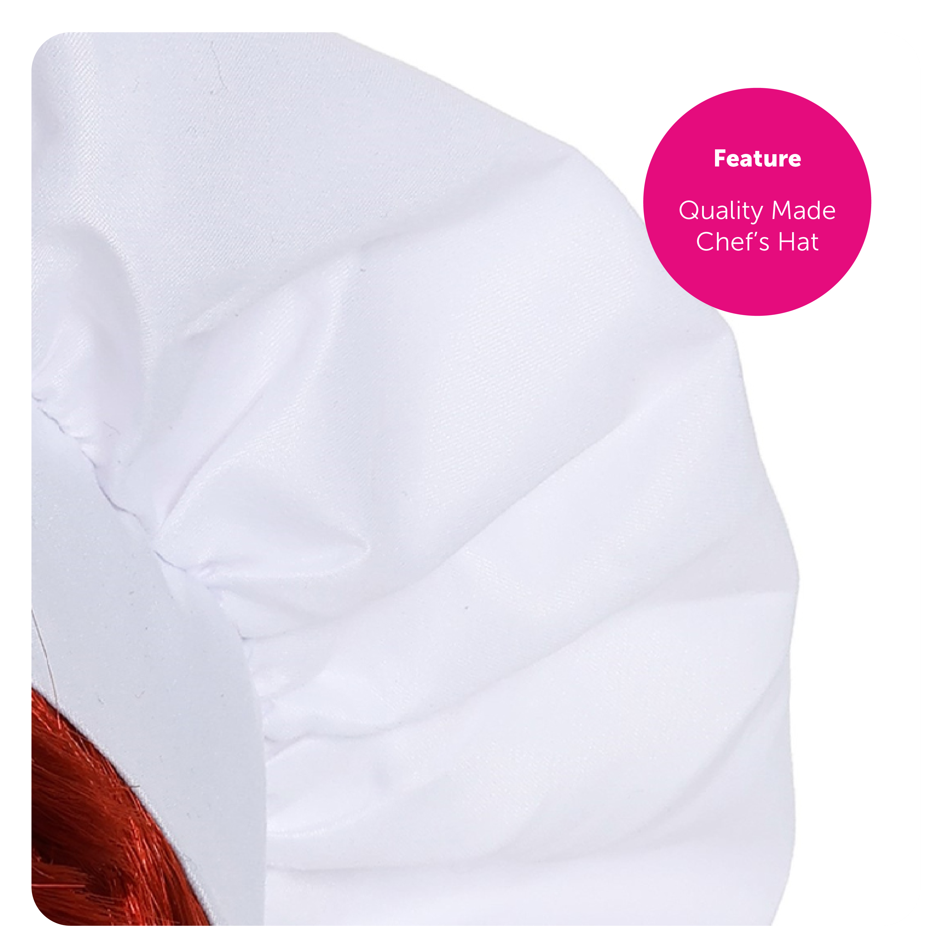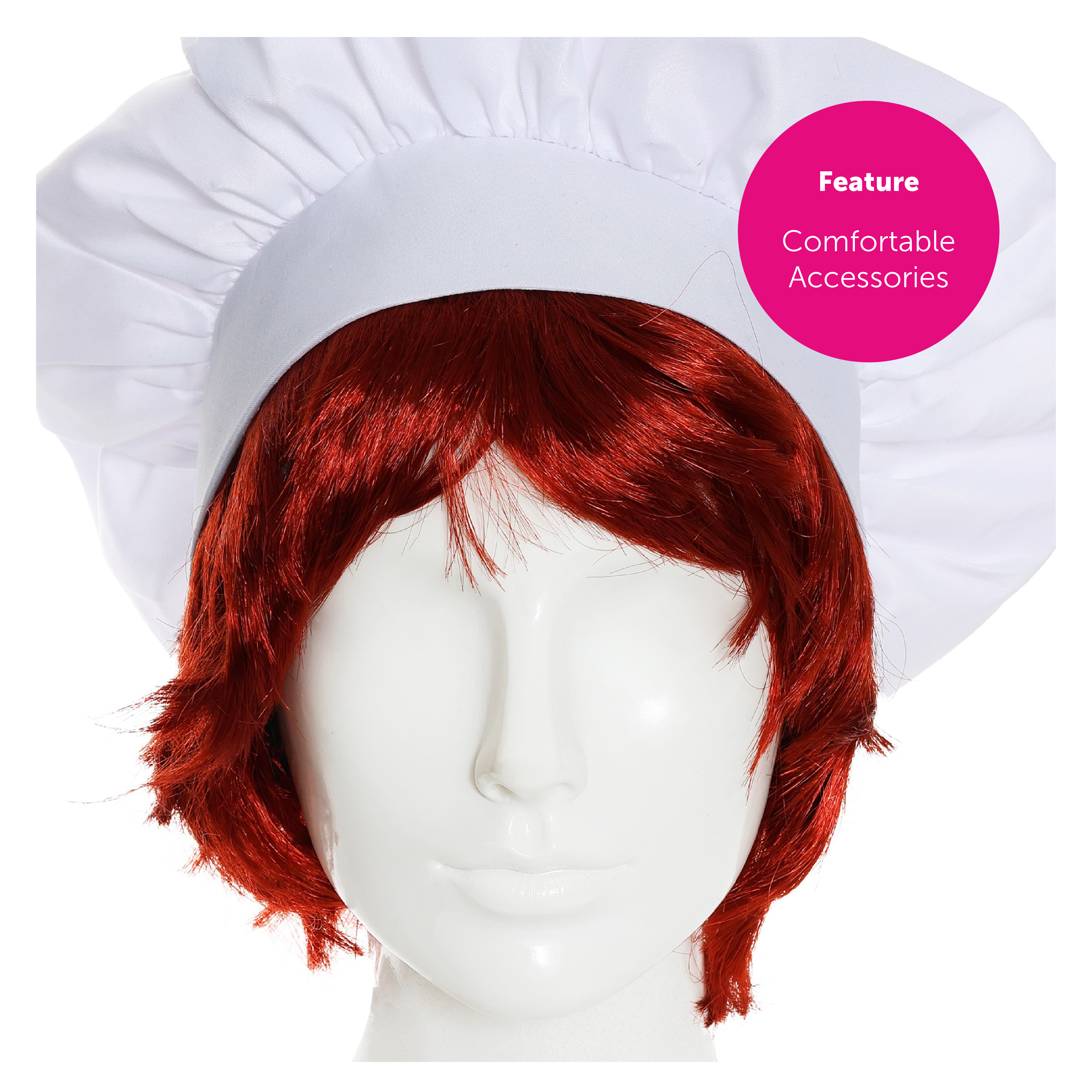 ACCESSORY SET INCLUDES: This Adults Ginger Chef Accessory Set includes a Short Red Ginger Wig and a tall Plain White Chef's Hat, the perfect accessories to match your Costume!