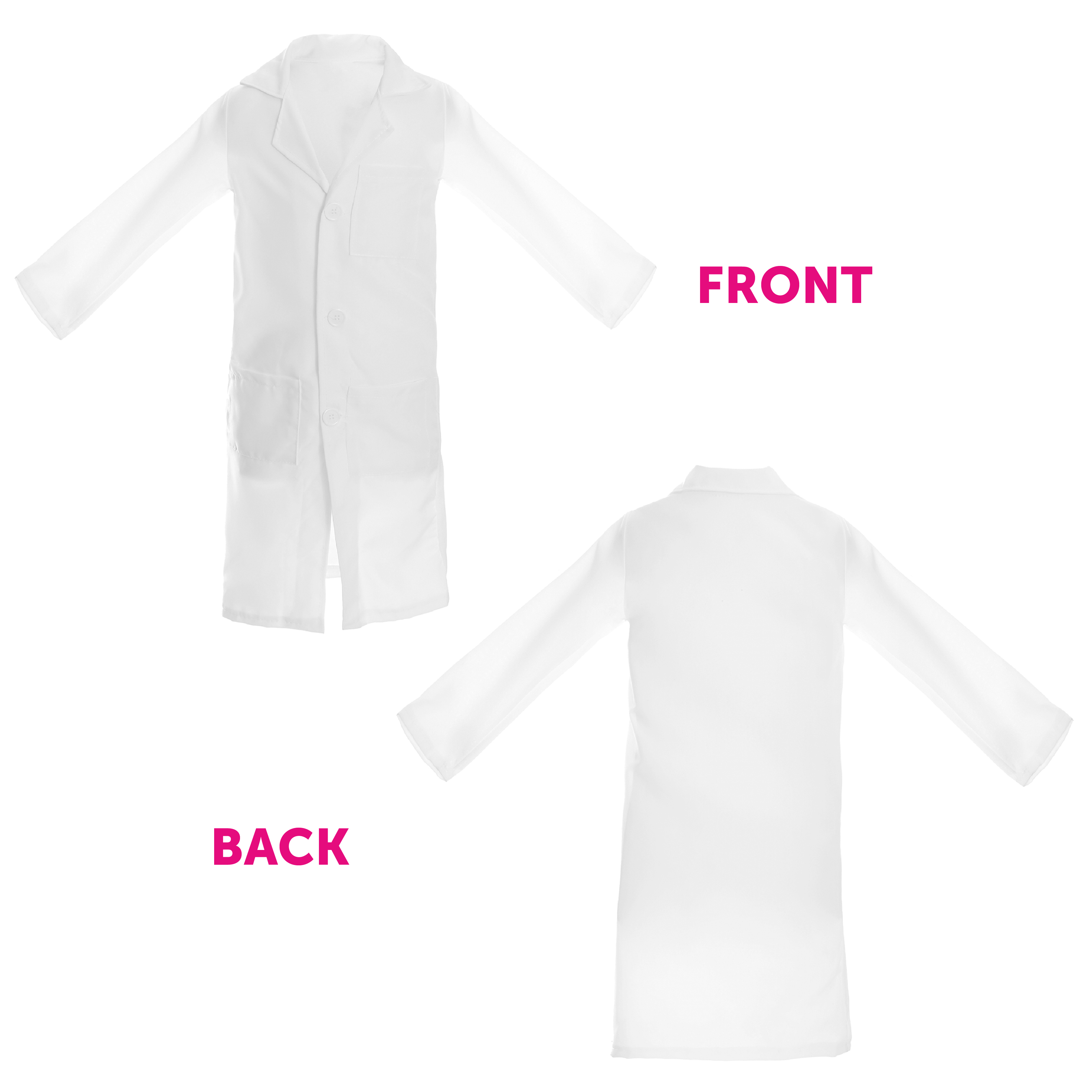 AVAILABLE IN MULTIPLE SIZES: Your Childs Unisex Lab Coat is available in multiple sizes from Small to X-Large: Small - 4/6 Years Chest - 24/26" Length - 29" | Medium 7/9 Years - Chest - 26/28" Length - 31" | Large - 10/12 Years Chest - 28/30" Length - 34" | X-Large 12/13 Years - Chest - 30/32" - Length - 36"