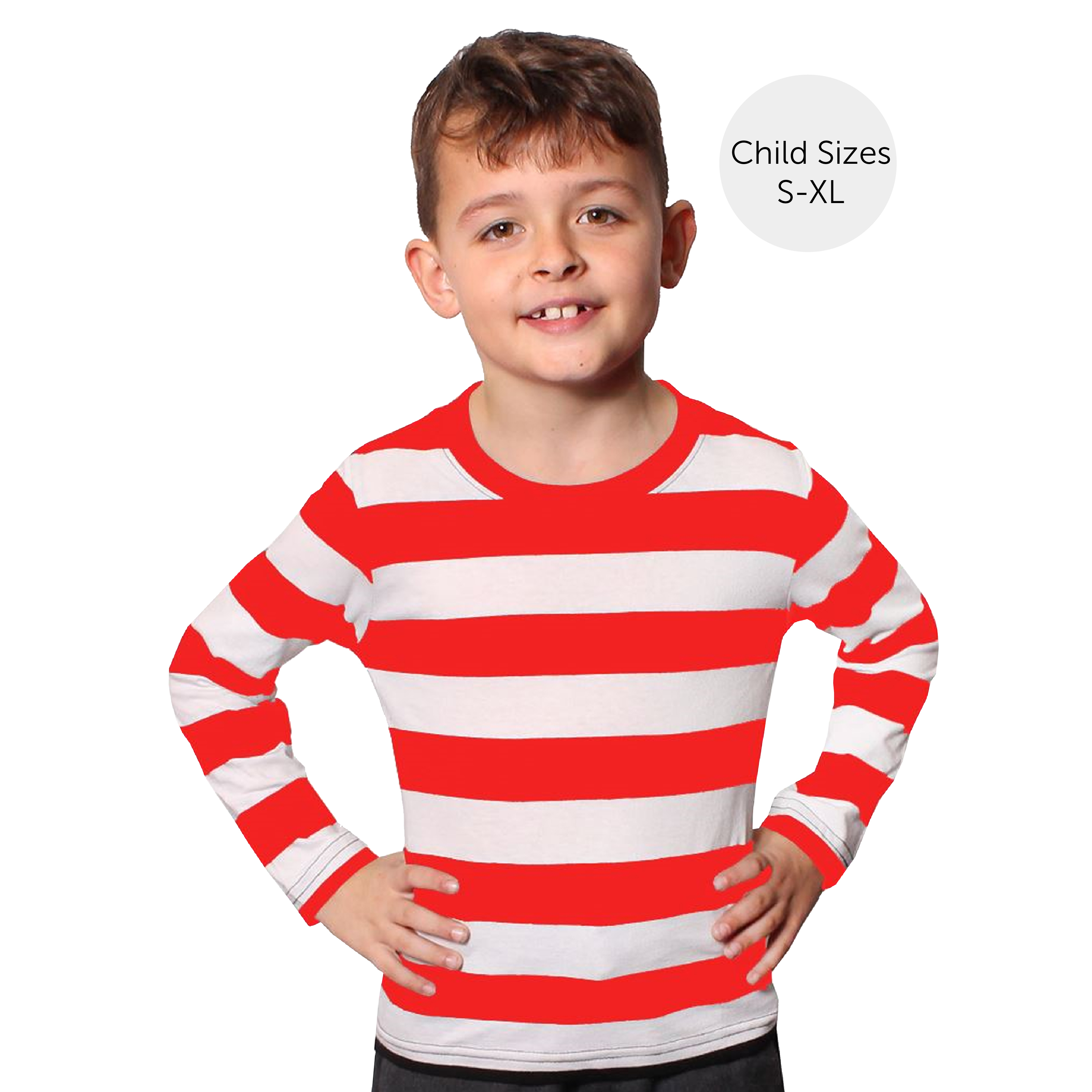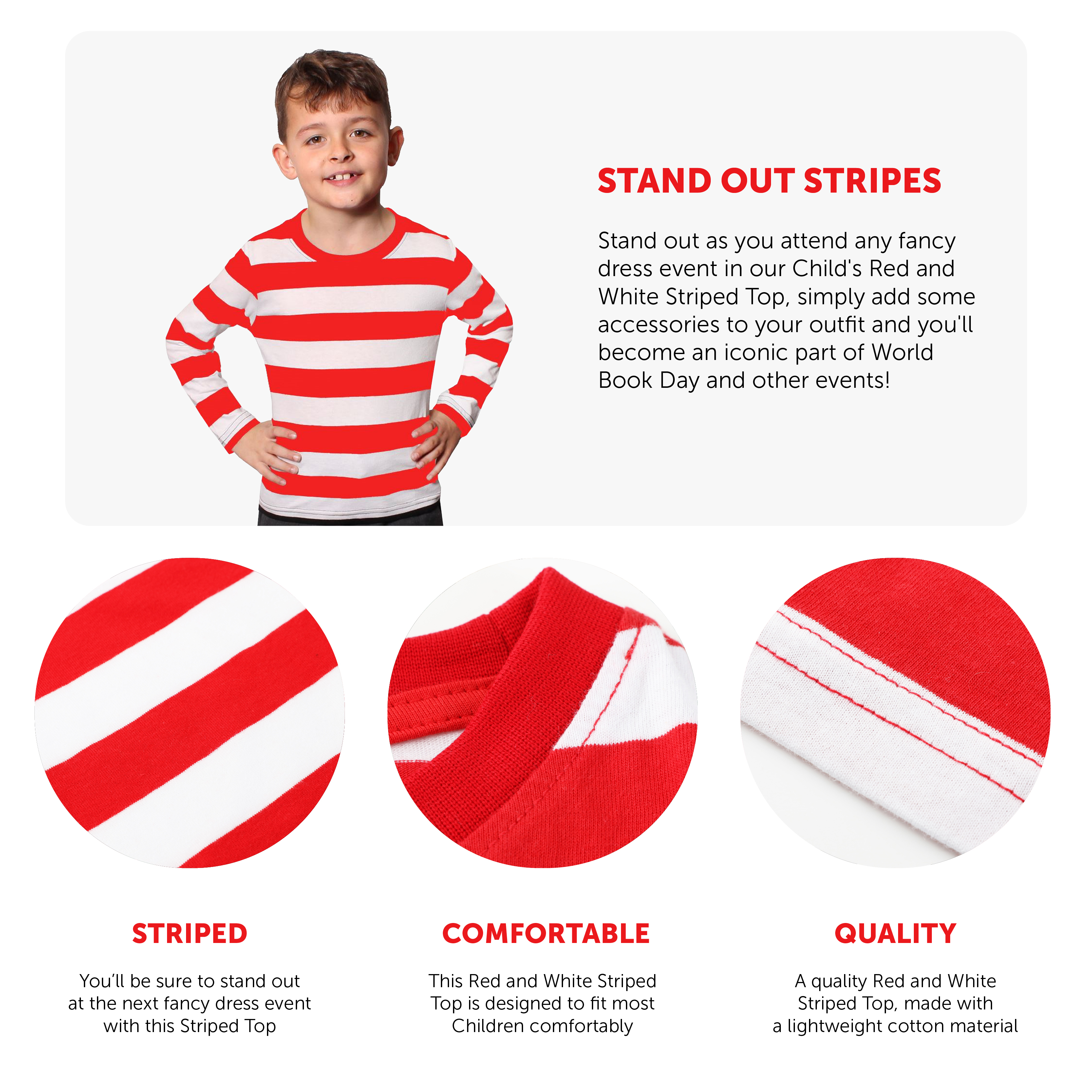 FANTASTIC QUALITY: Add to an iconic World Book Day character look, and be instantly recognisable in this bold, quality made Red and White Striped Top - add a Bobble Hat and Glasses, and you'll be set to go!