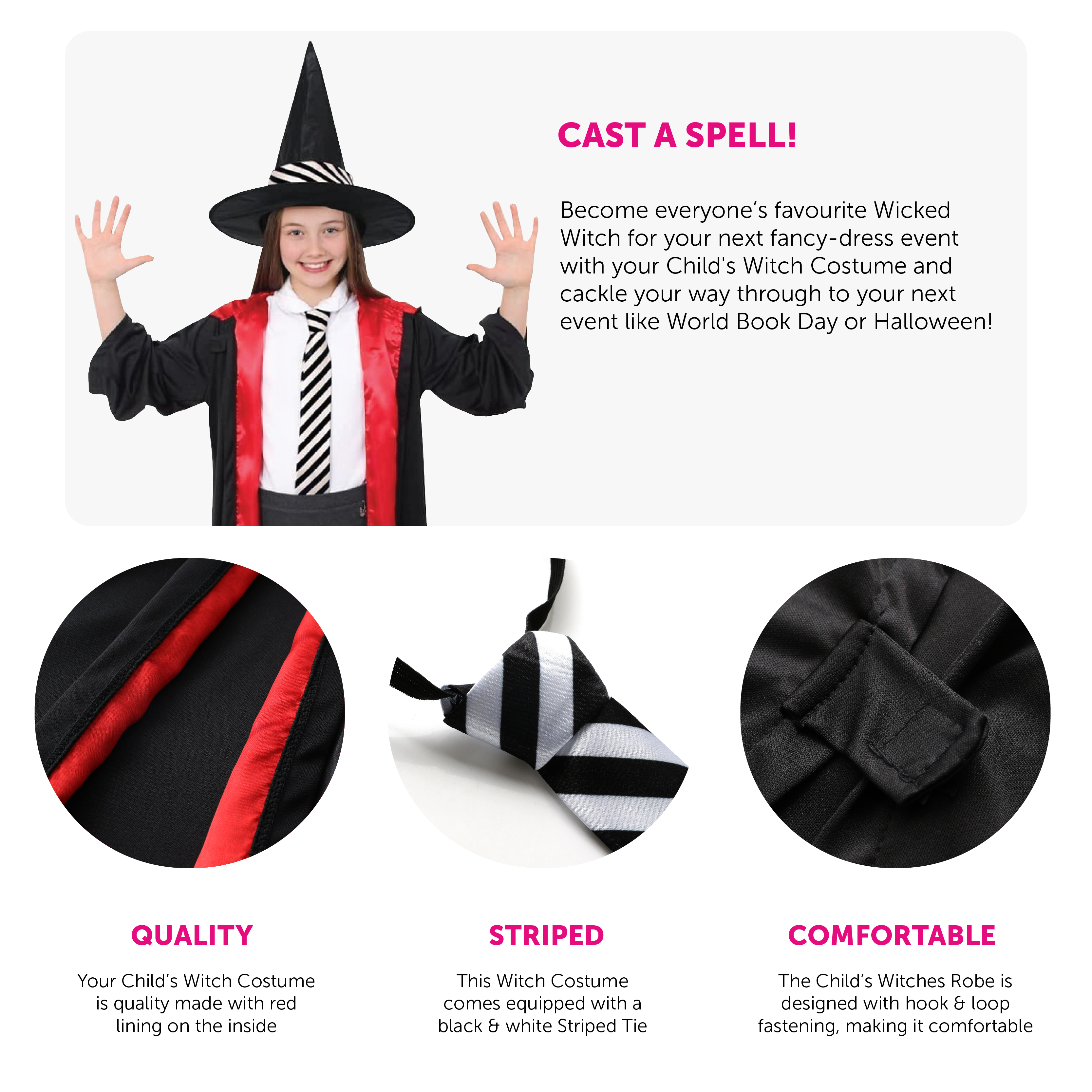 PERFECT FOR WORLD BOOK DAY: Perfect for all things wizard and witchcraft, our Child's School Witch Costume is perfect for World Book Day and can be used for any other Fancy Dress Party, event, or occasion you can think of!